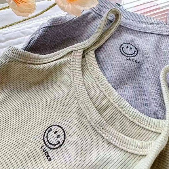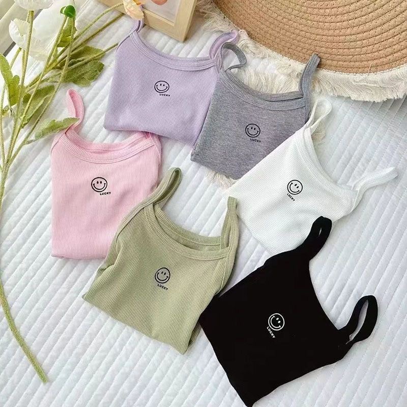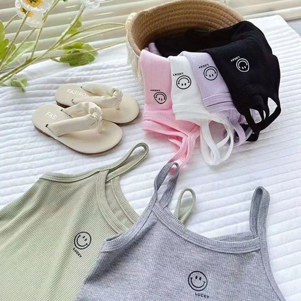 여름 소녀 조끼 슬링 아기 서양식 어린이 성격 유행 브랜드 인터넷 축하 유행 편지 만화 내복 외부 착용