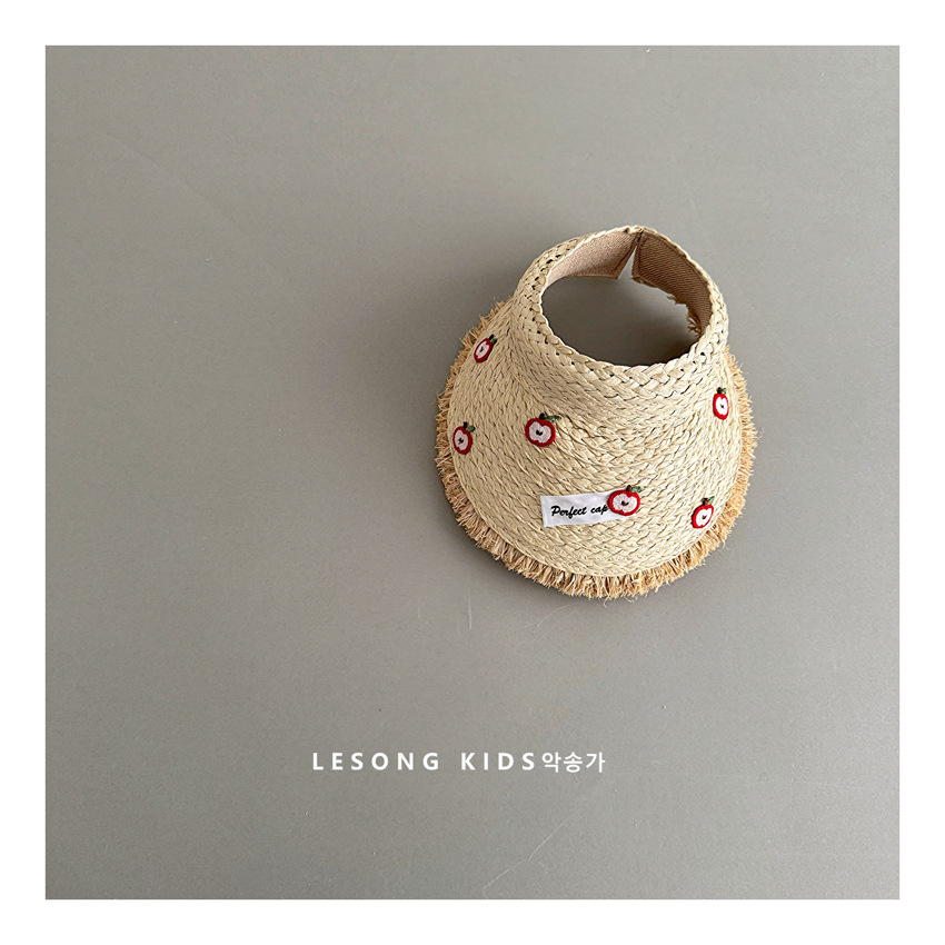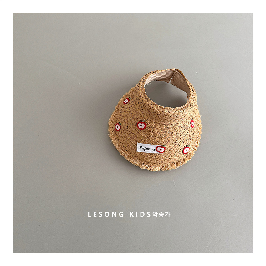 儿童韩版童趣苹果纽扣草编空顶帽