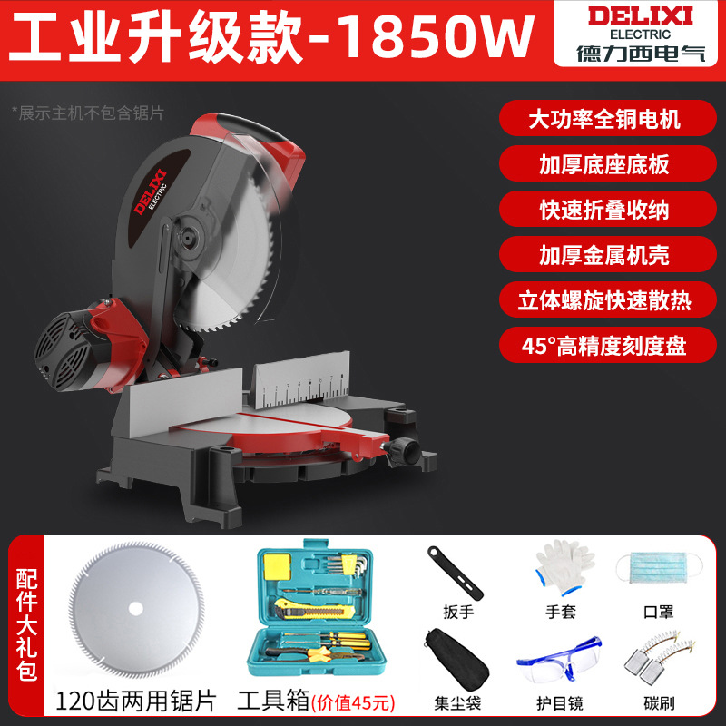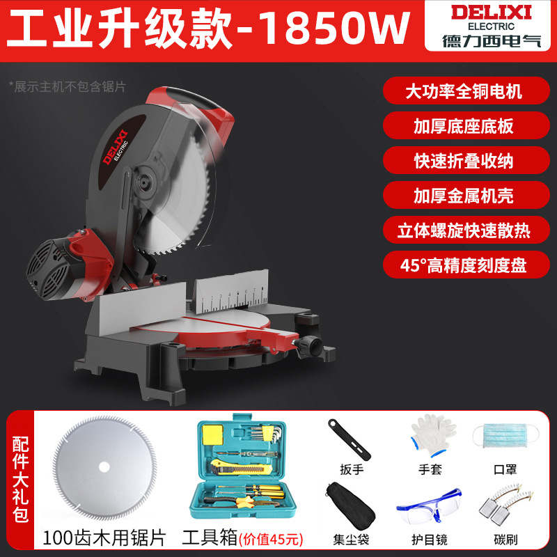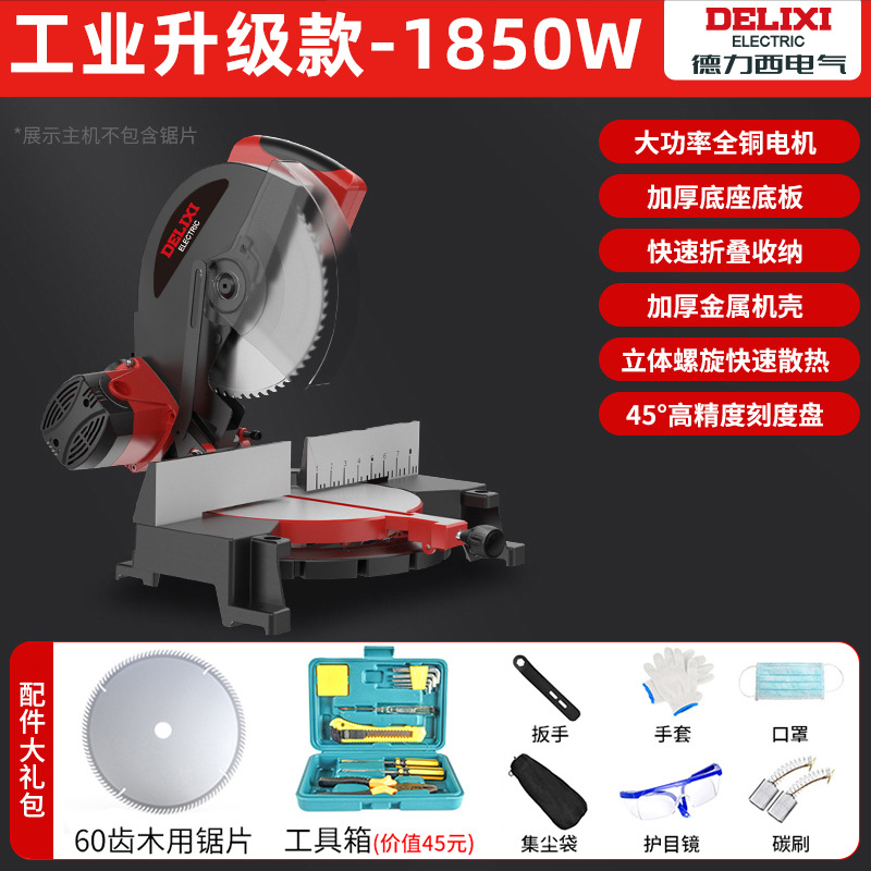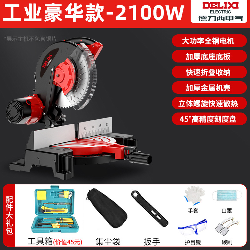 Delixi 알루미늄 톱 다기능 절단기 10inch 알루미늄 합금 목재 및 알루미늄 45도 경사 8극을 절단하는 고정밀 톱