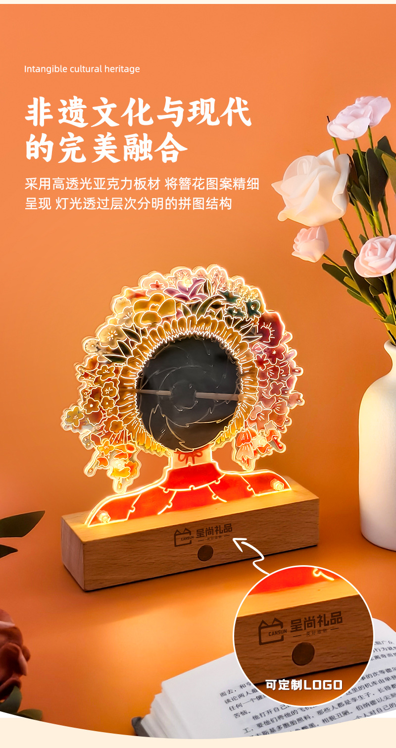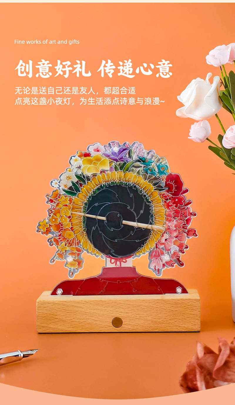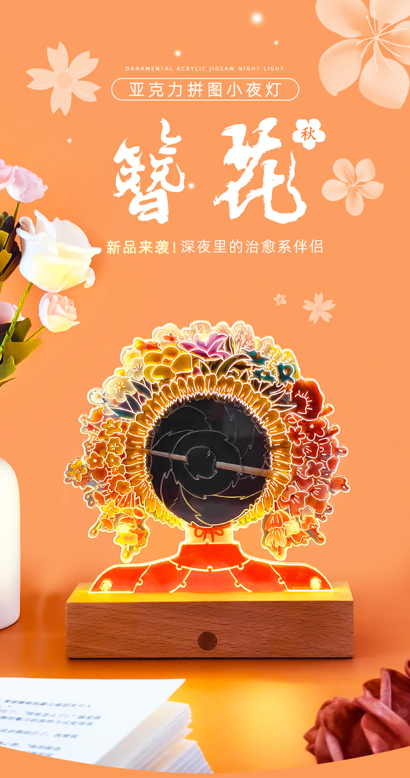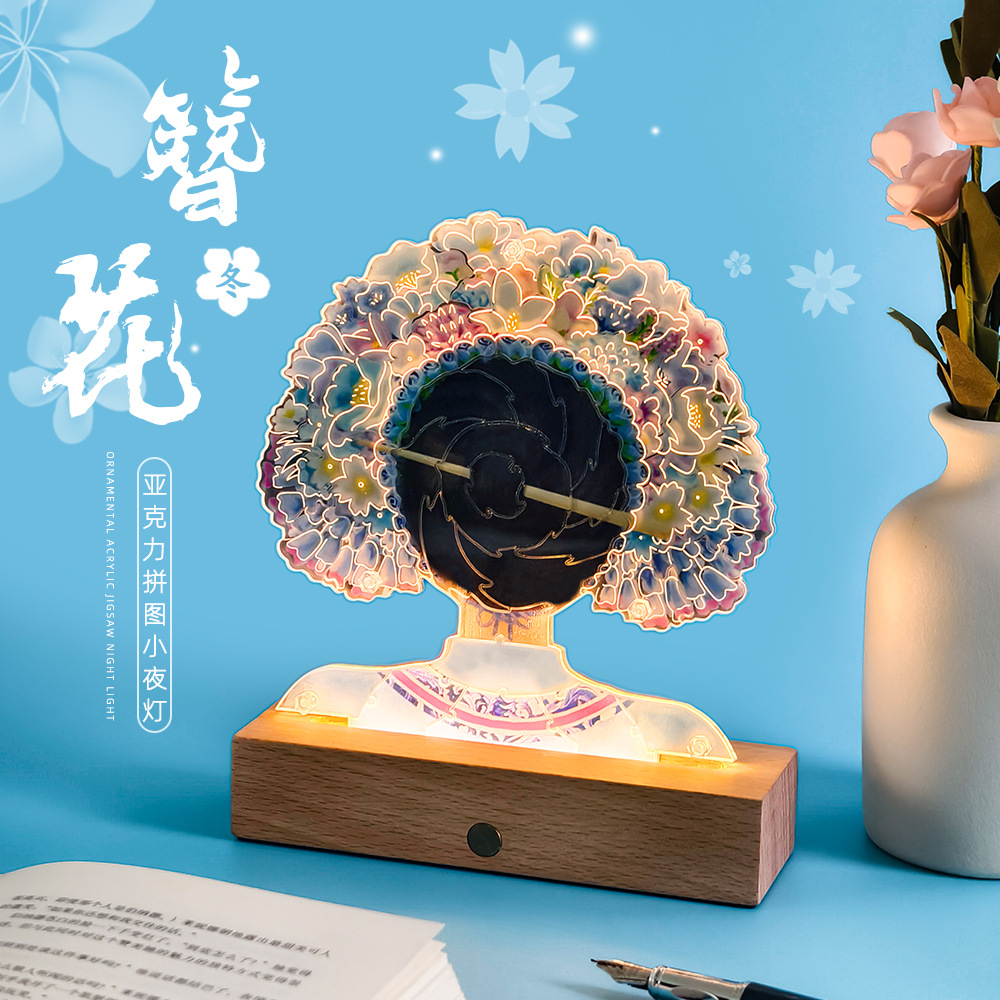 천주 Wenchuang 선물 머리핀 꽃 아크릴 DIY 퍼즐 나이트 라이트 창조적 인 국가 패션 테이블 램프 데스크탑 장식품