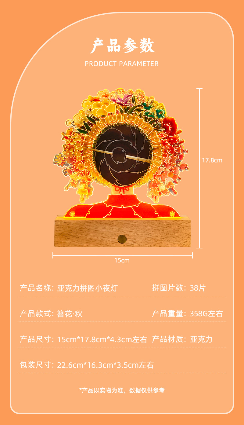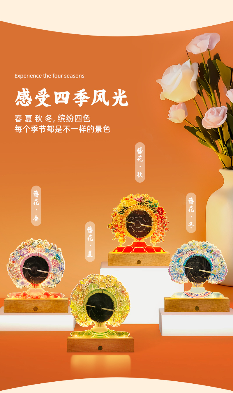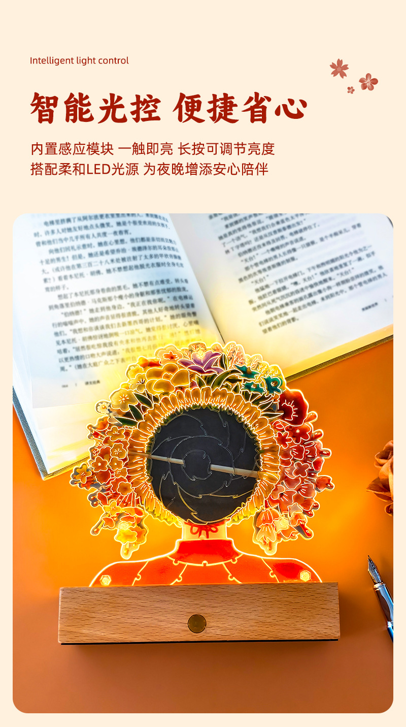 천주 Wenchuang 선물 머리핀 꽃 아크릴 DIY 퍼즐 나이트 라이트 창조적 인 국가 패션 테이블 램프 데스크탑 장식품