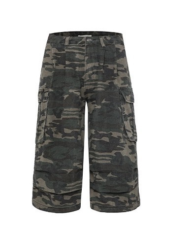 여름 미국 포켓 넓은 다리 위장 데님 자른 바지 새로운 도착 유행 브랜드 느슨한 캐주얼 자른 바지스토어 가기