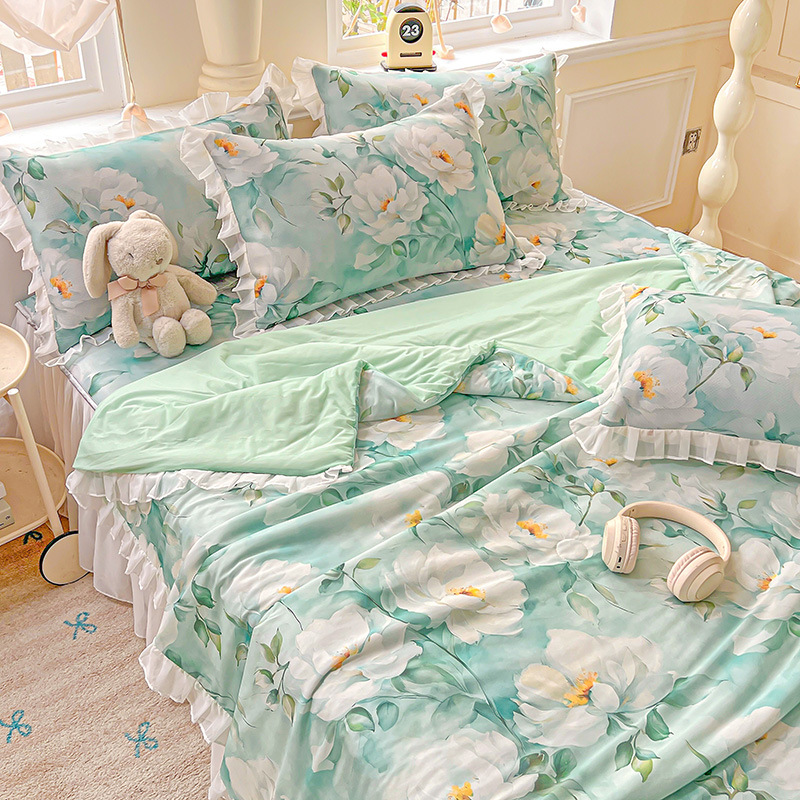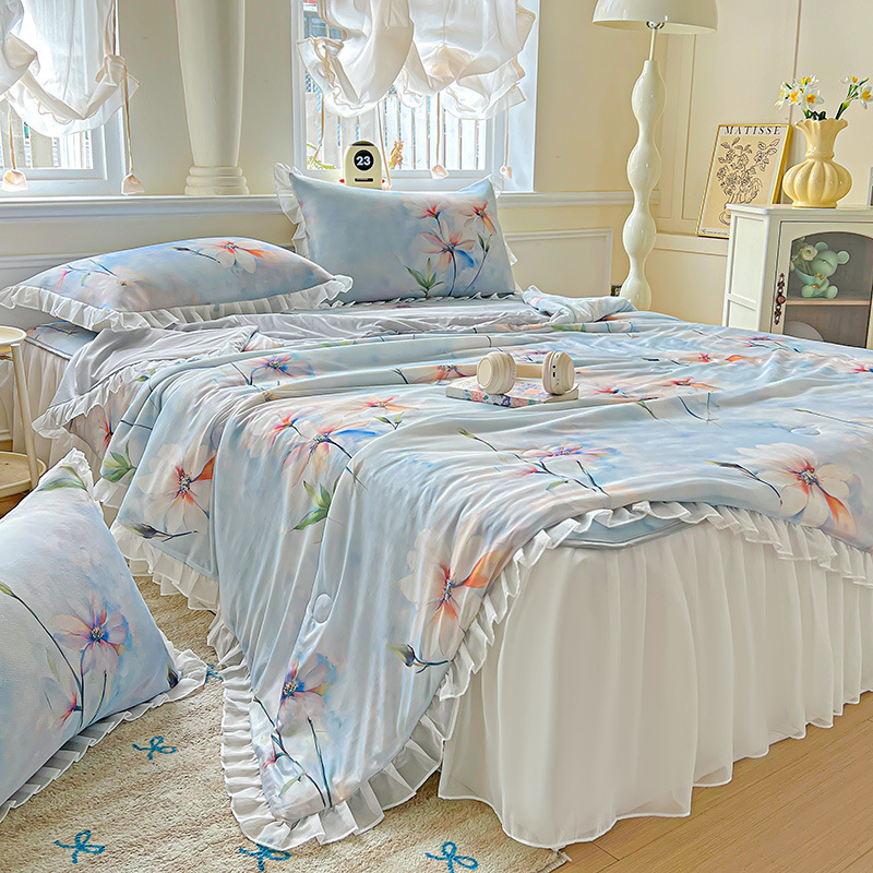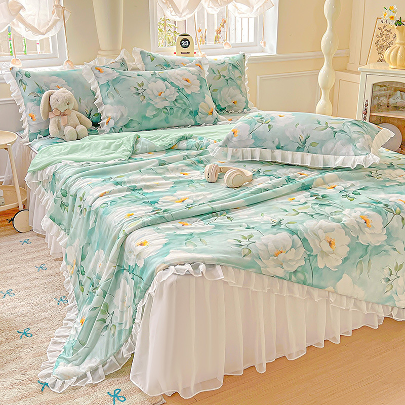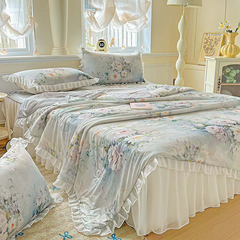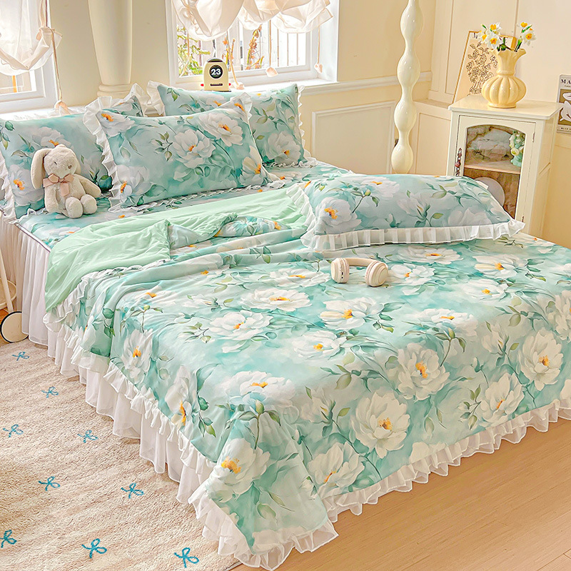 • 1.5m 침대 레이스 여름 이불 + 매트 4종 세트 (이불 200*230cm)