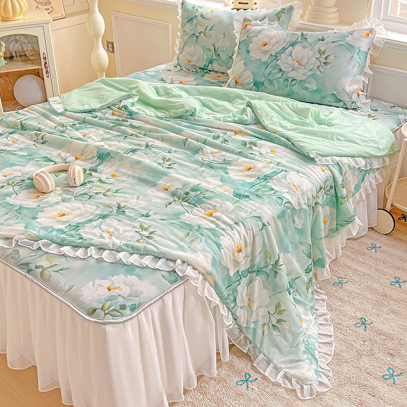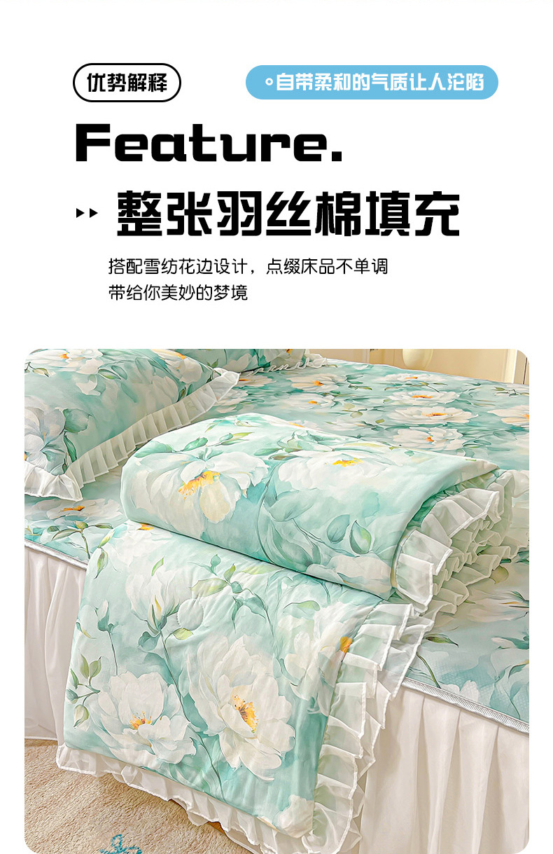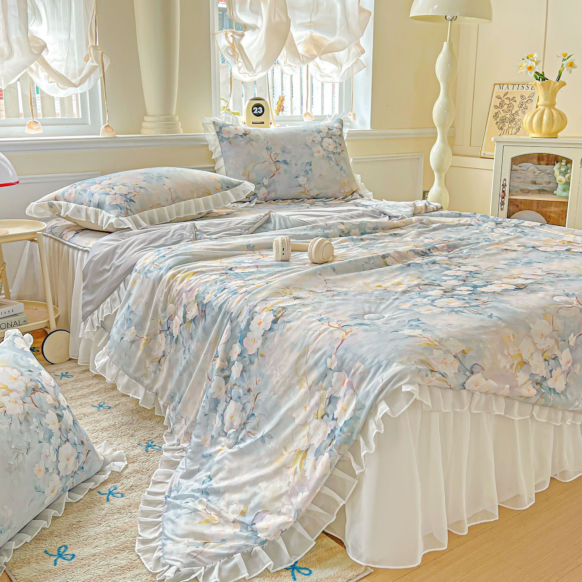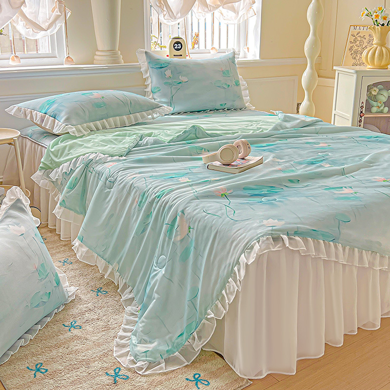 • 1.5m 침대 레이스 여름 이불 + 매트 4종 세트 (이불 200*230cm)