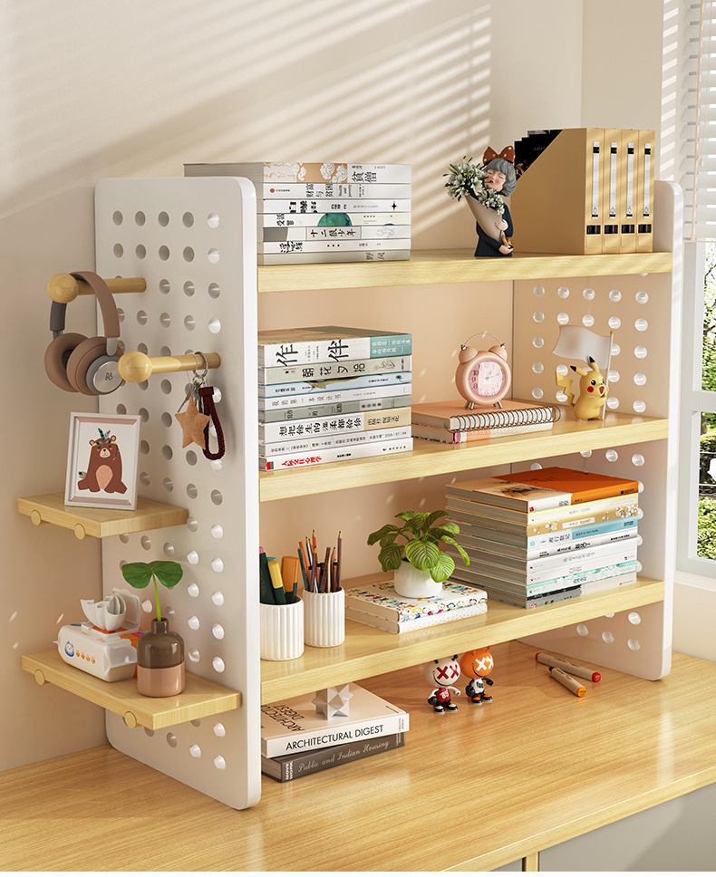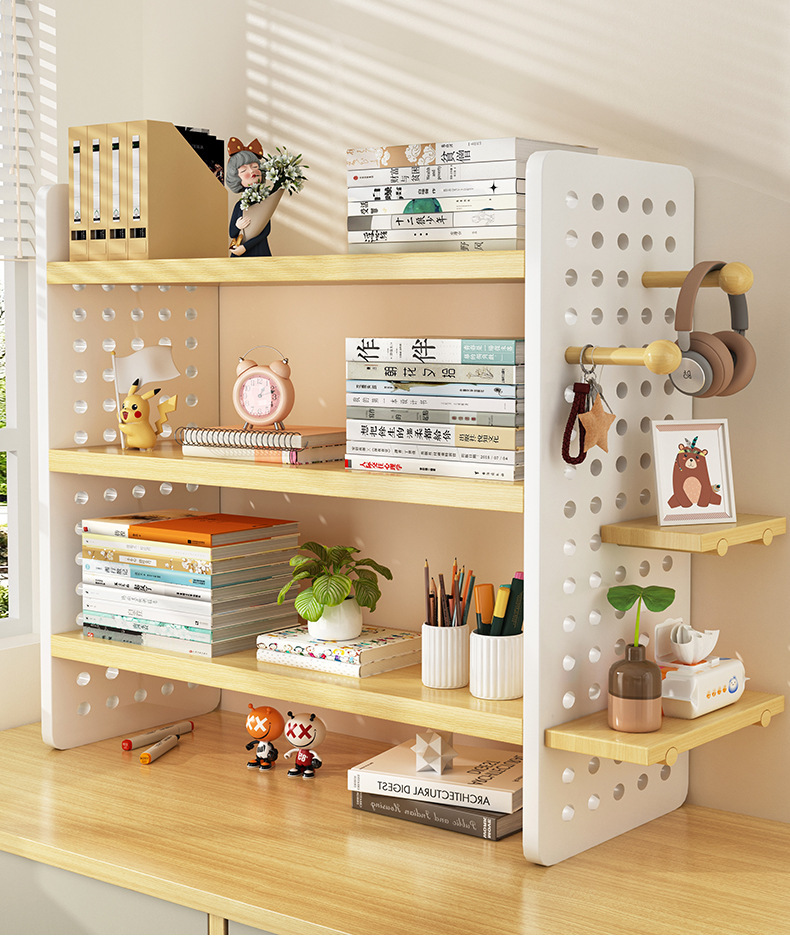 데스크탑 스토리지 랙 데스크탑 책장 사무실 데스크 스테이션 다층 디스플레이 랙 가정용 데스크 홀 보드 스토리지 랙