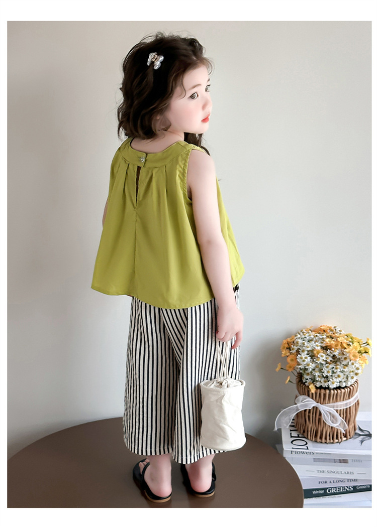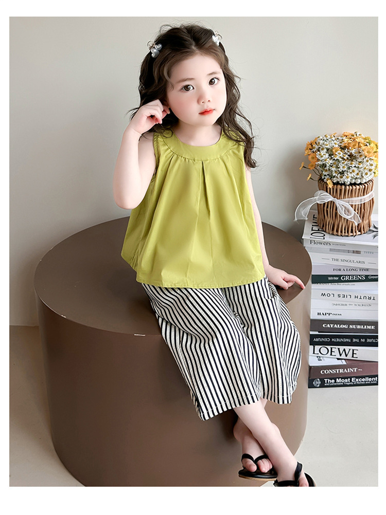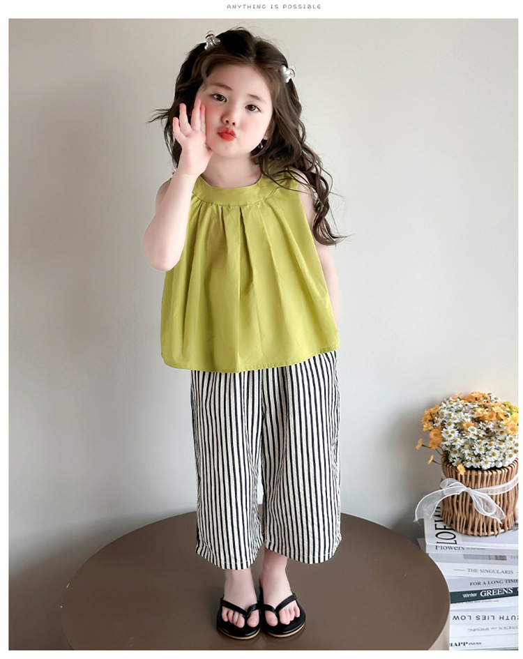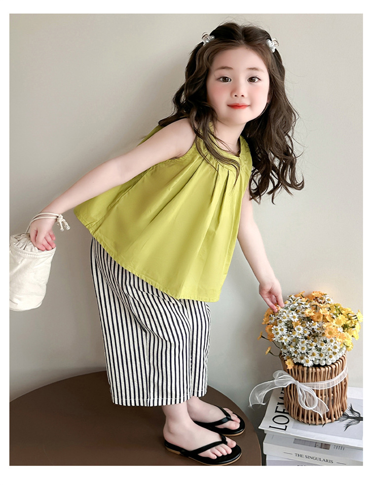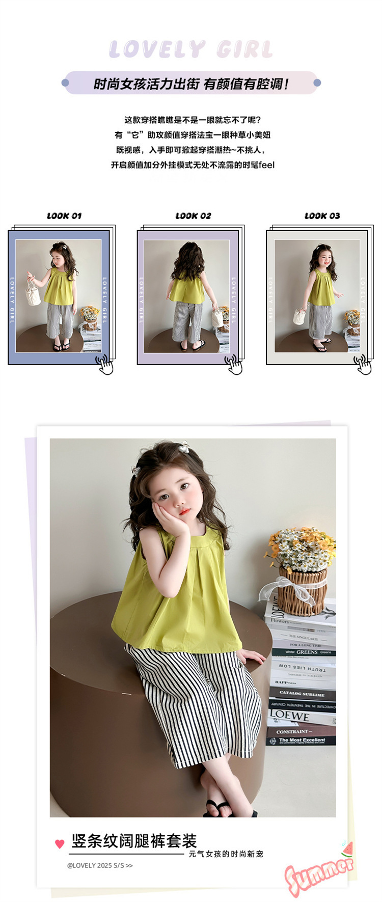 소녀 수직 줄무늬 넓은 다리 바지 세트 2025 여름 새로운 패션 소녀 세련된 투피스 어린이 여름 원피스스토어 가기