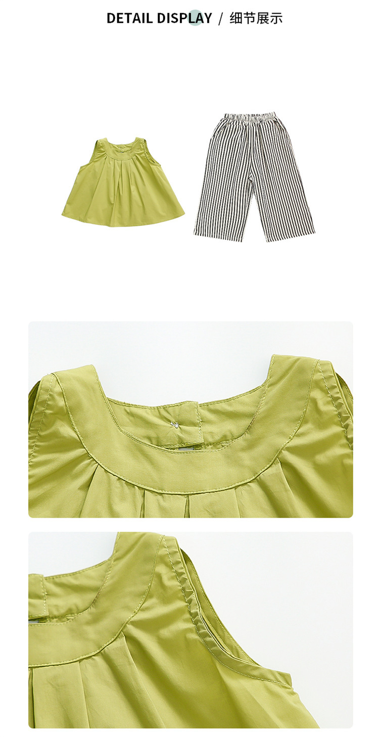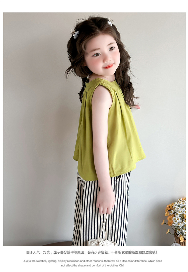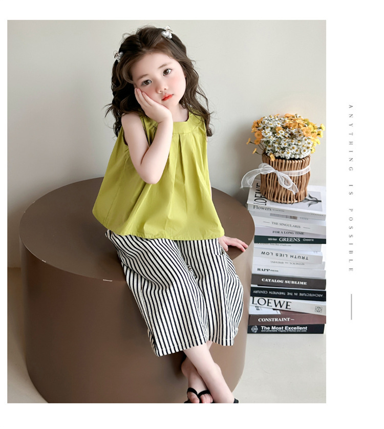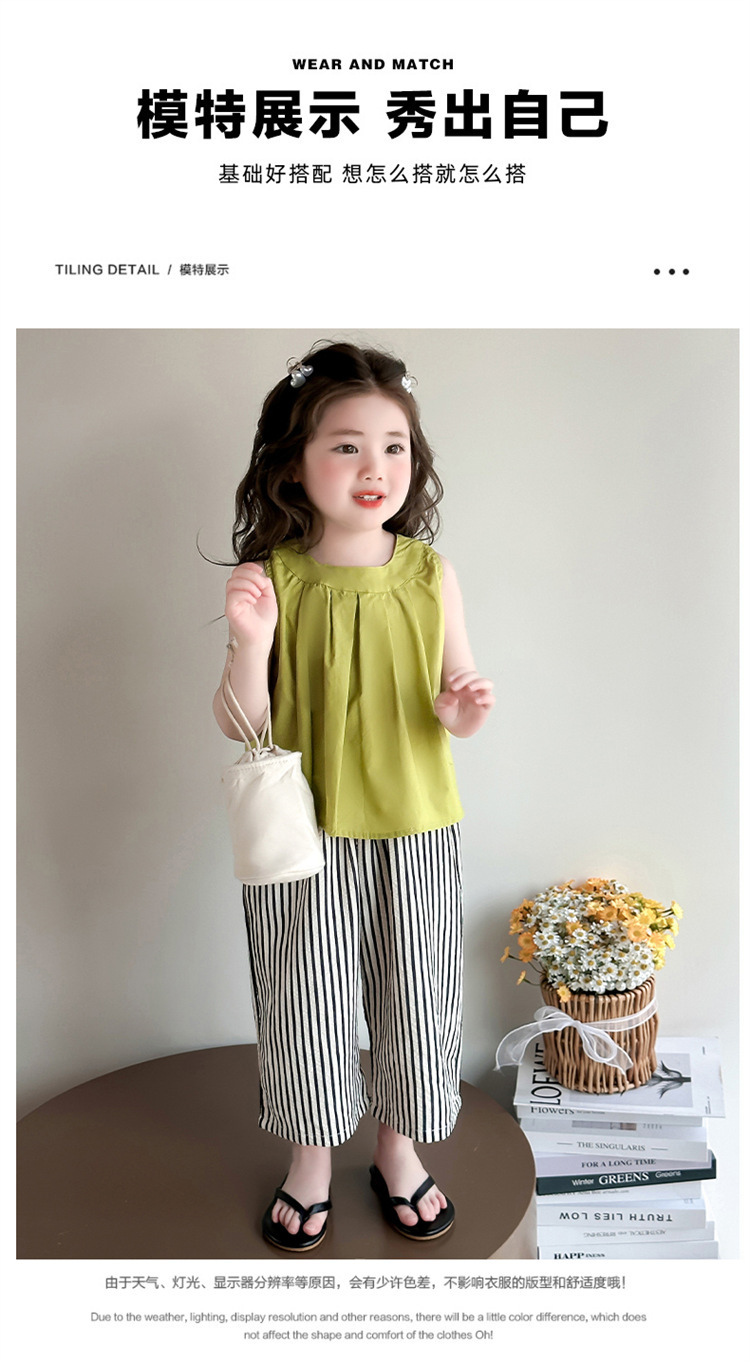 소녀 수직 줄무늬 넓은 다리 바지 세트 2025 여름 새로운 패션 소녀 세련된 투피스 어린이 여름 원피스스토어 가기