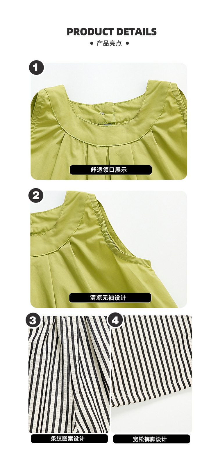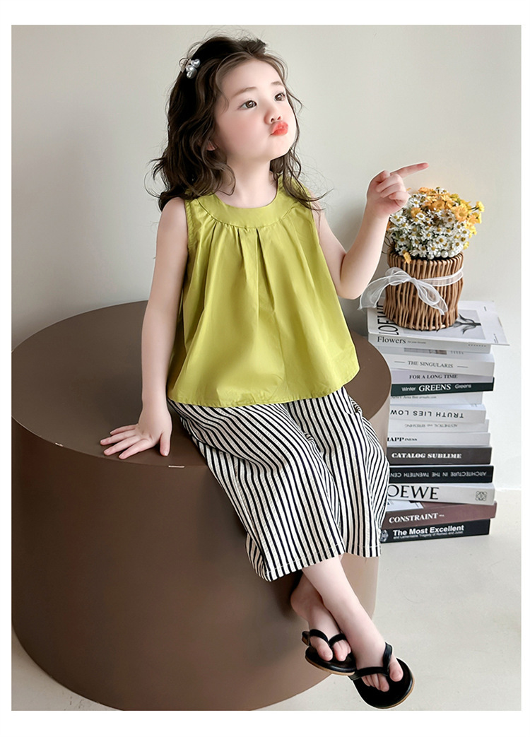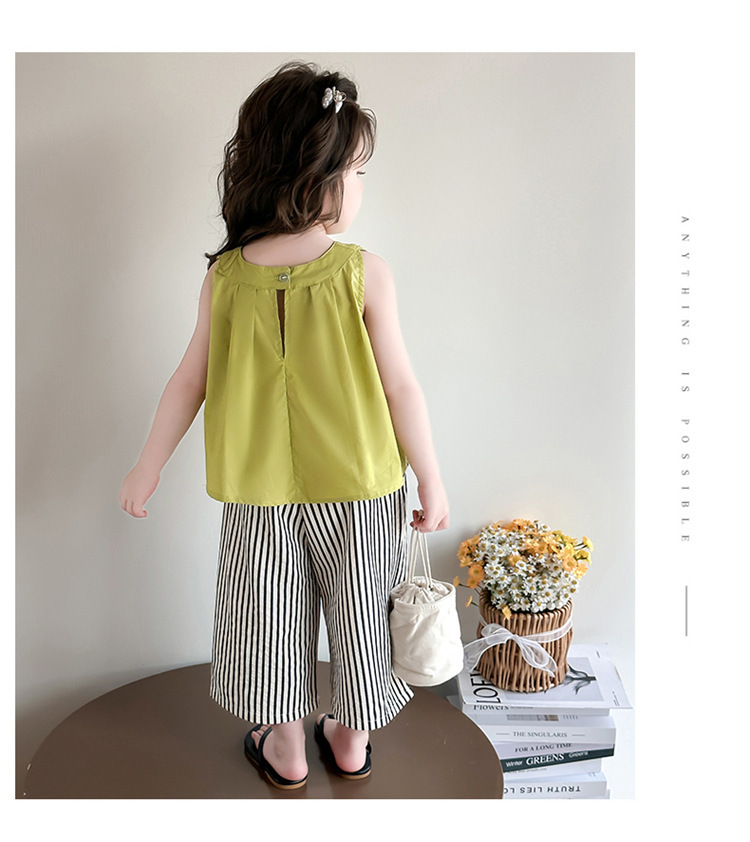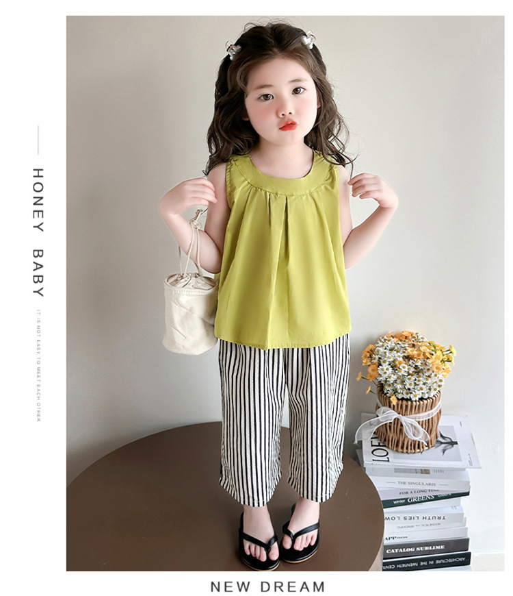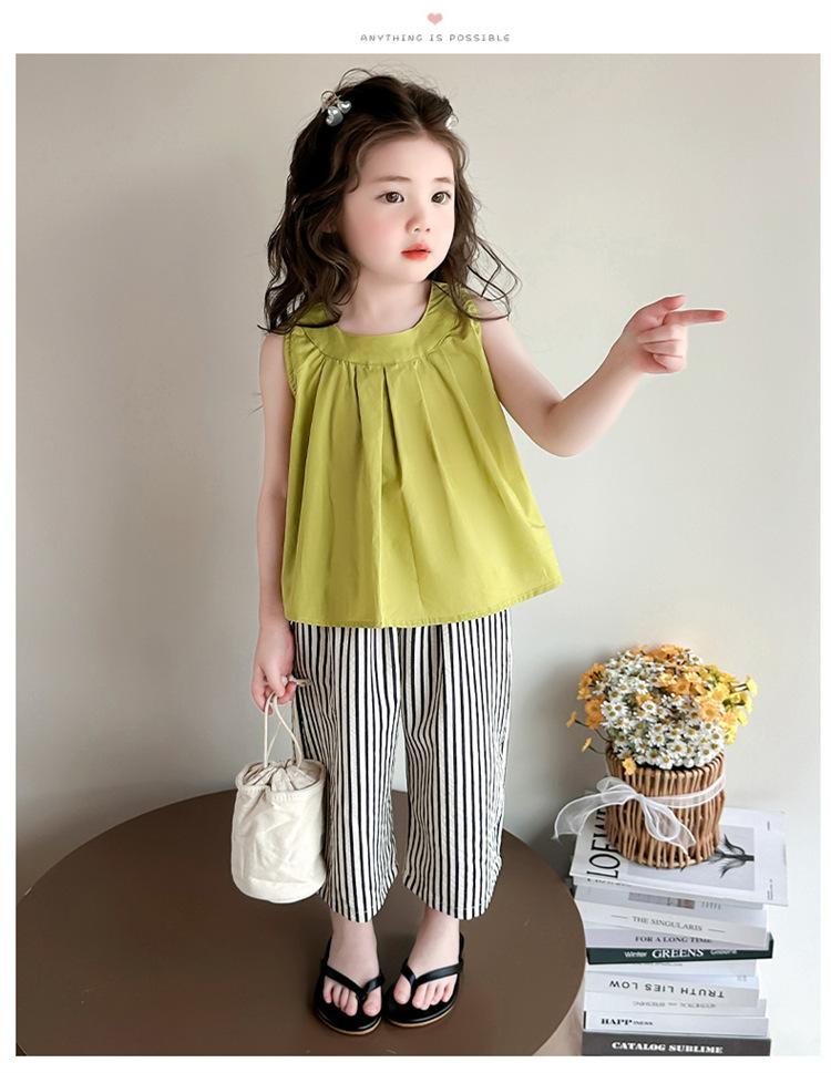소녀 수직 줄무늬 넓은 다리 바지 세트 2025 여름 새로운 패션 소녀 세련된 투피스 어린이 여름 원피스
