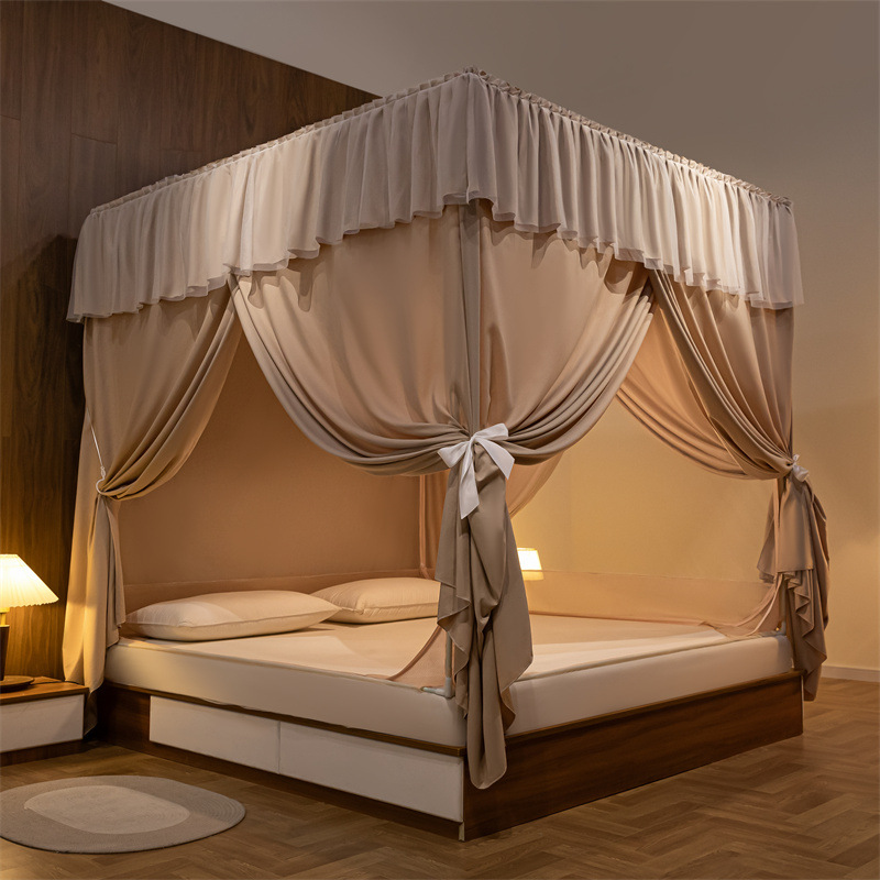 바닥 서 모기장 2025 새로운 가정 공주 바람 더블 원사 침대 커튼 유럽 스타일 침실 모기 커버 3 도어 무료 설치스토어 가기