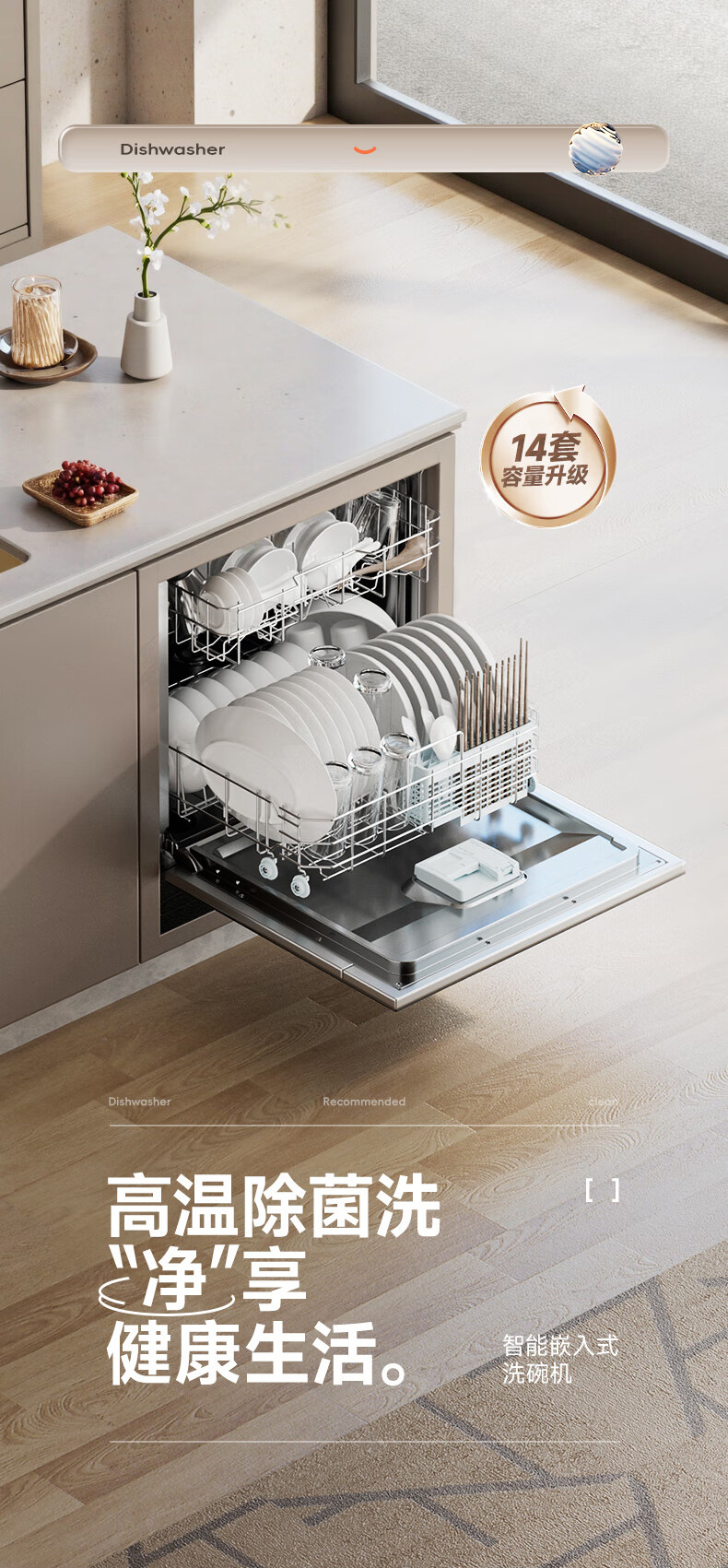 14 세트 대용량 식기 세척기 열풍 건조 엄마와 아이 소독 자동 도어 개방 층 세척 임베디드 식기 세척기