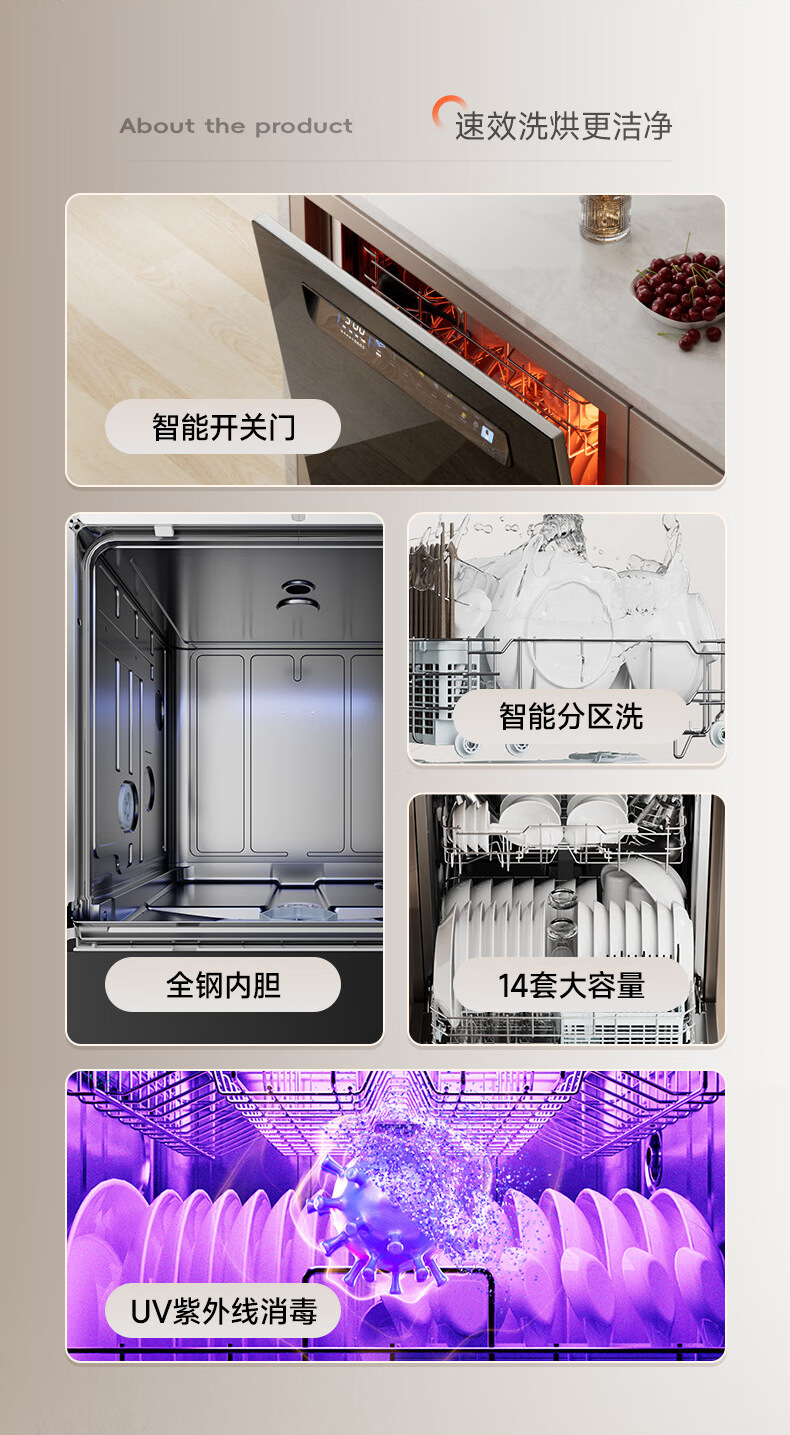 14 세트 대용량 식기 세척기 열풍 건조 엄마와 아이 소독 자동 도어 개방 층 세척 임베디드 식기 세척기스토어 가기