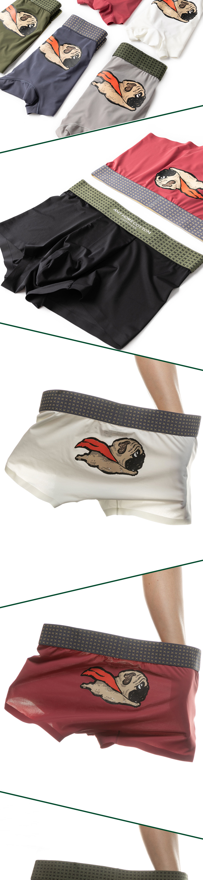 남성 속옷 아이스 실크 만화 인쇄 복서 상쾌한 뽕나무 실크 통기성 미드 웨이스트 4 코너 반바지