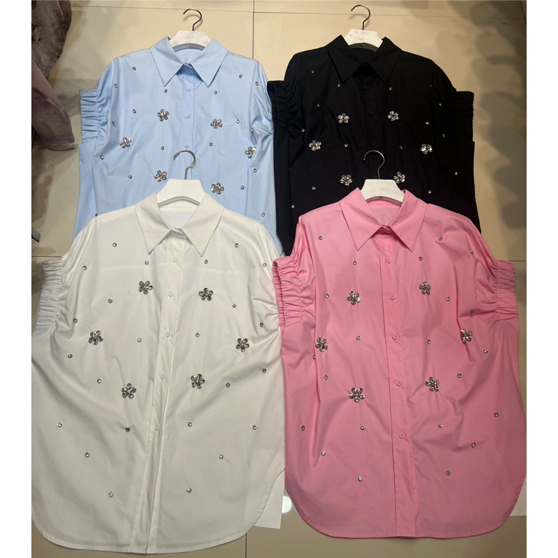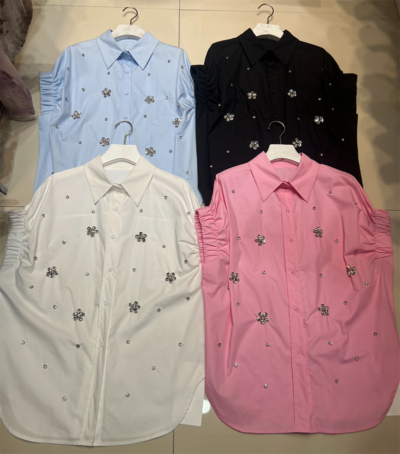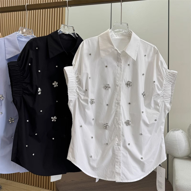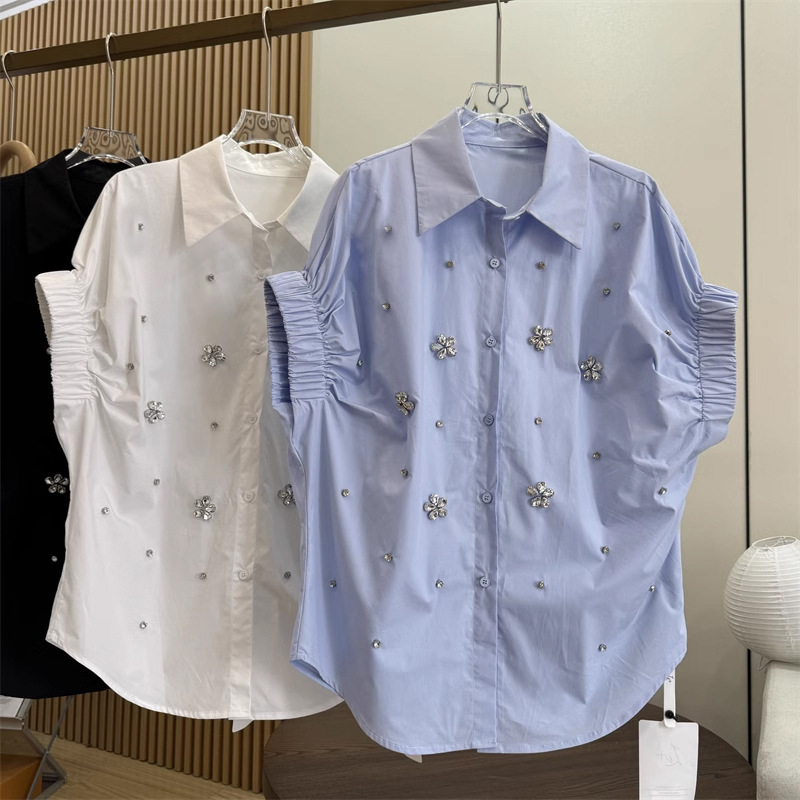디자인 센스 중공업 구슬 자수 셔츠 느슨한 슬리밍 연령 감소 셔츠 최고 여성의 짧은 소매