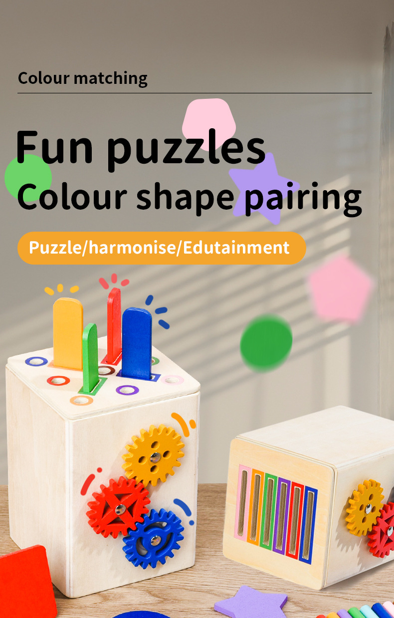 Weiweihu 어린이 색상 모양 분류 기어 동전 상자 초기 교육 나무 기어 나무 배럴 몬테소리 퍼즐 게임스토어 가기