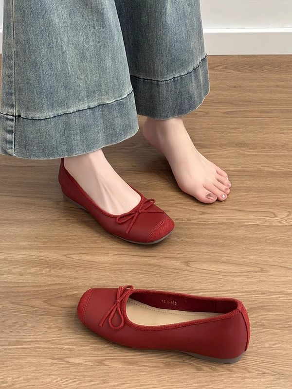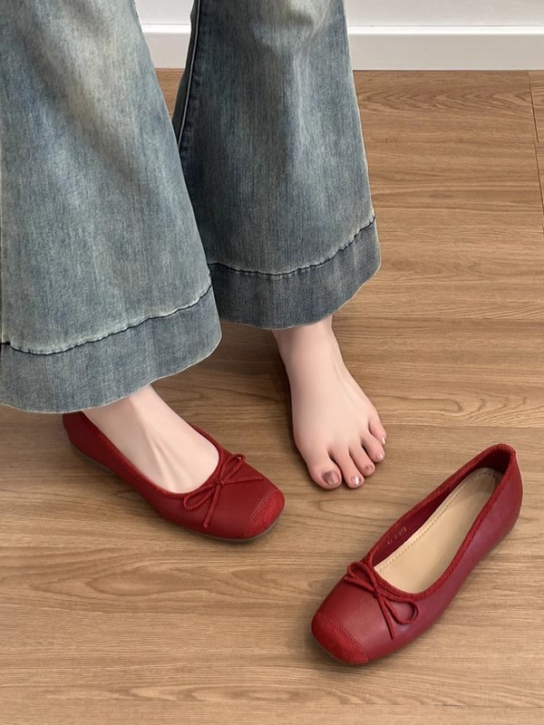 양가죽 버전 ~ 정품 가죽 프랑스 스타일 작은 높이 발레 슈즈 여성 복고풍 활 원온 슈즈스토어 가기
