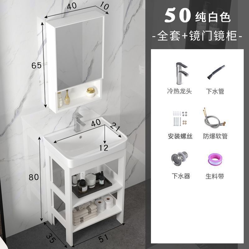 • 51*35 흰색 캐비닛 [문 없음] - 배수구 + 수도꼭지 액세서리 + 수납 거울 캐비닛
