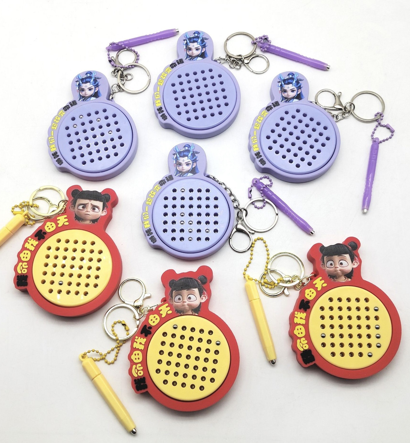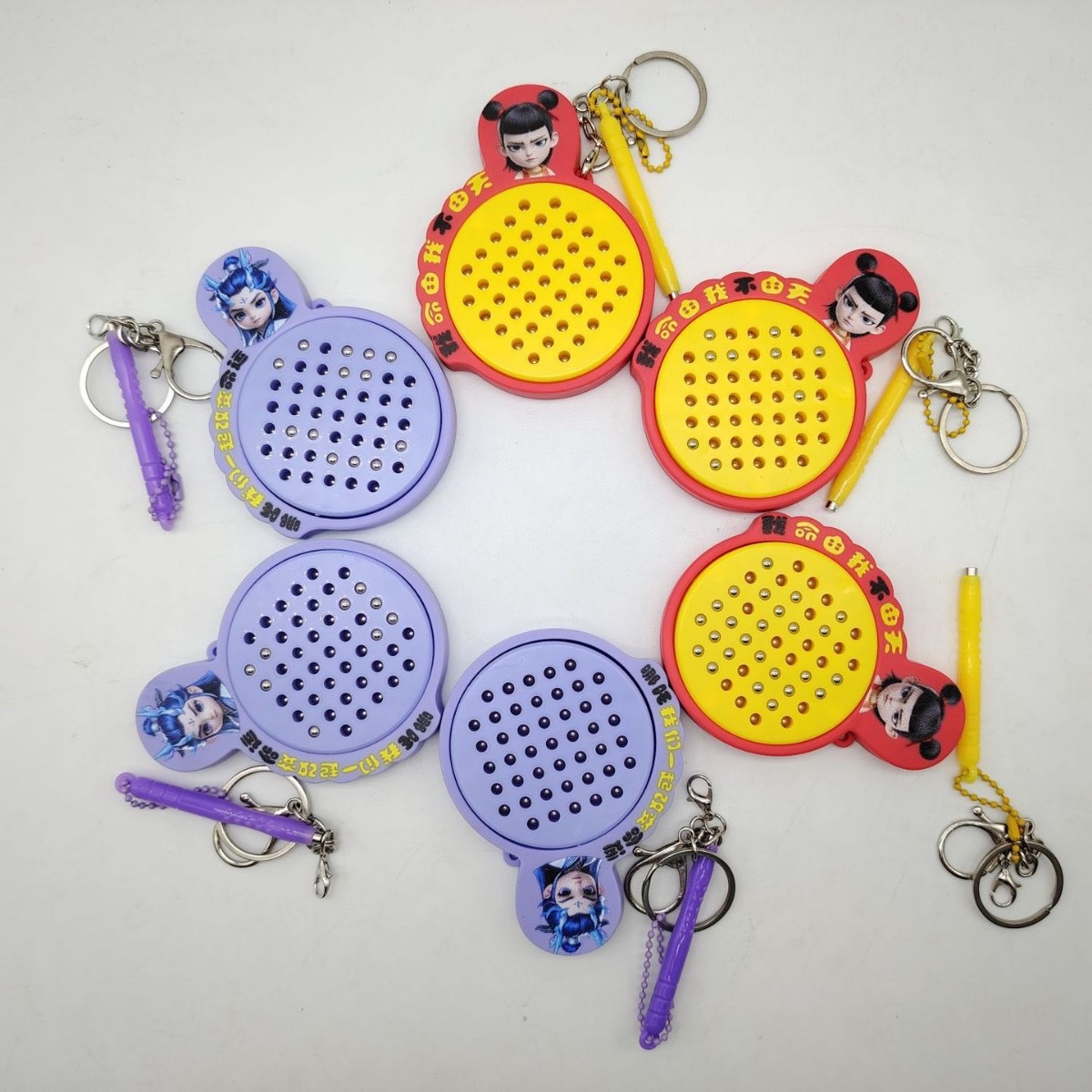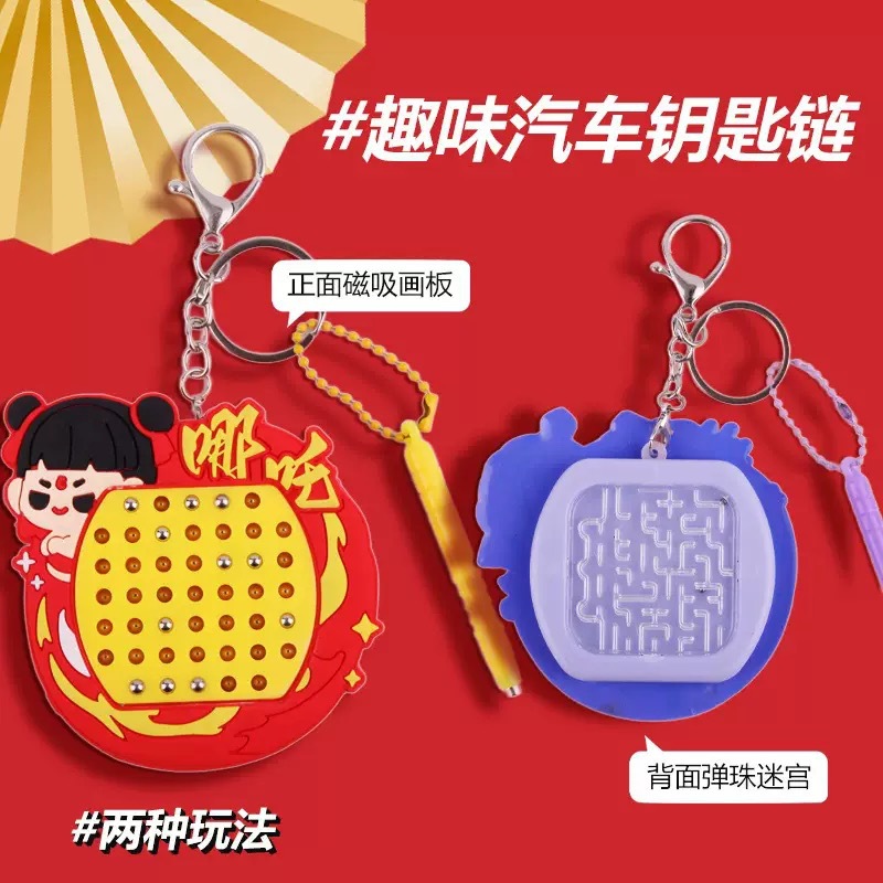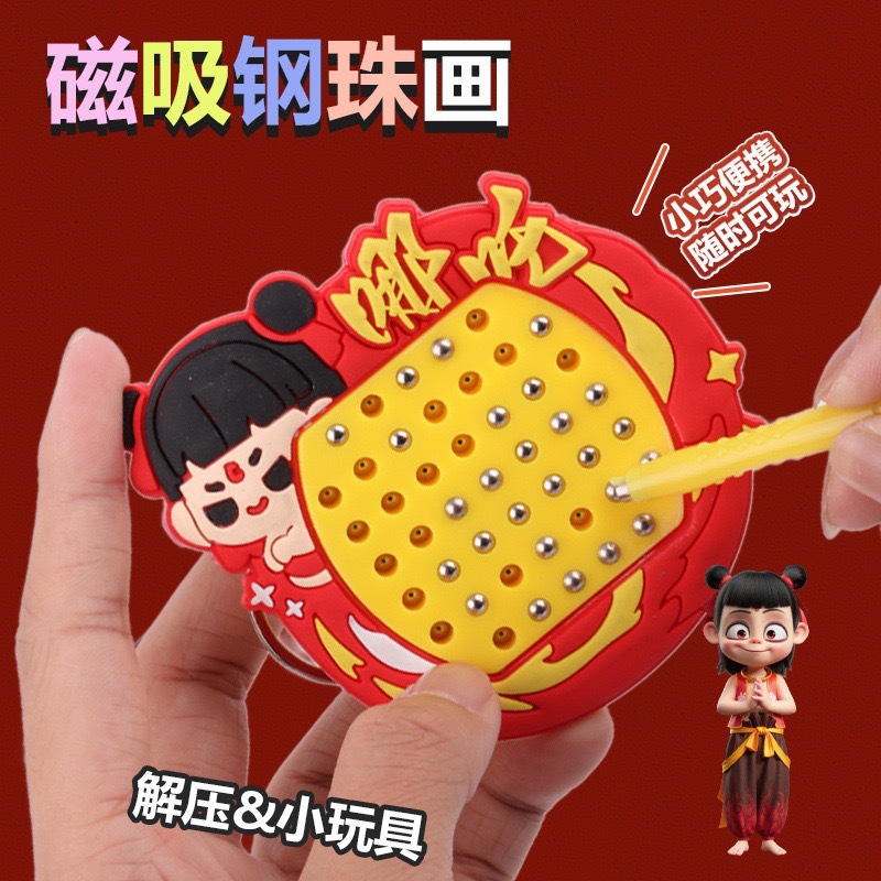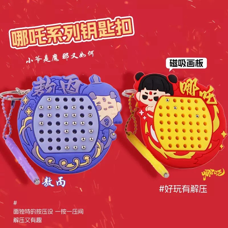 자석 스틸 볼 드로잉 보드 Nezha 고양이 열쇠 고리 펜던트 미니 감압 작은 선물 학교 가방 펜던트 열쇠 고리