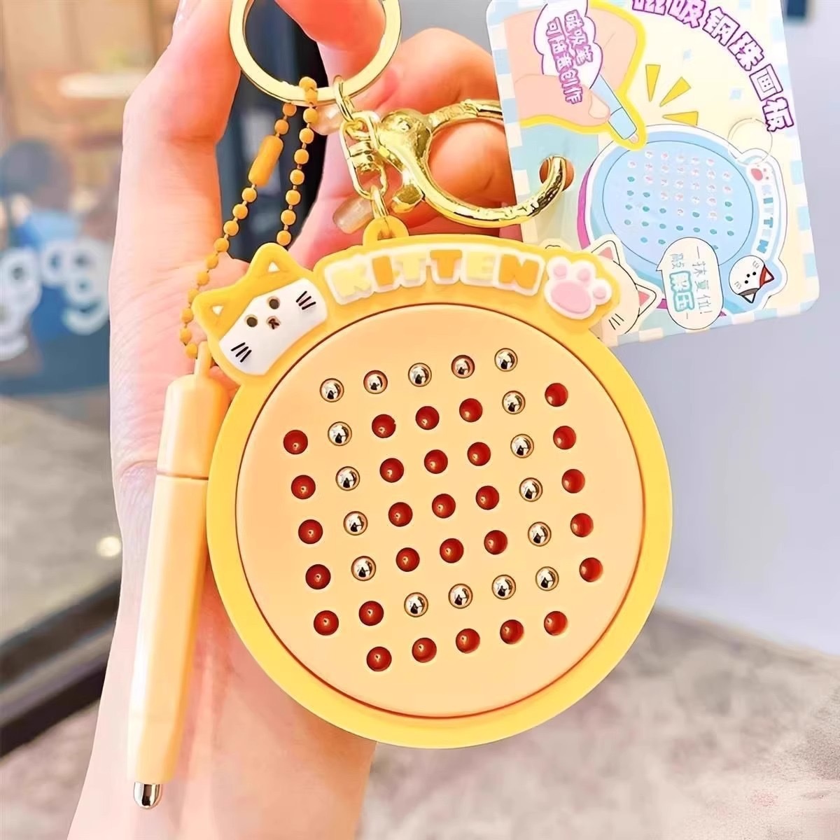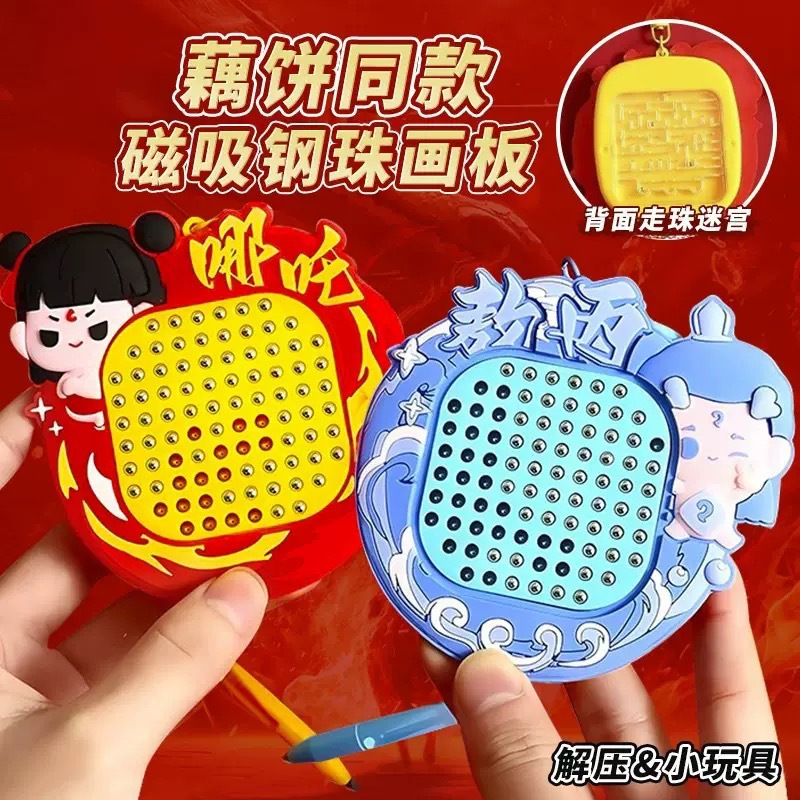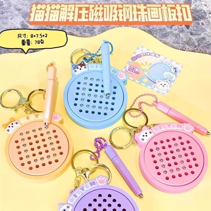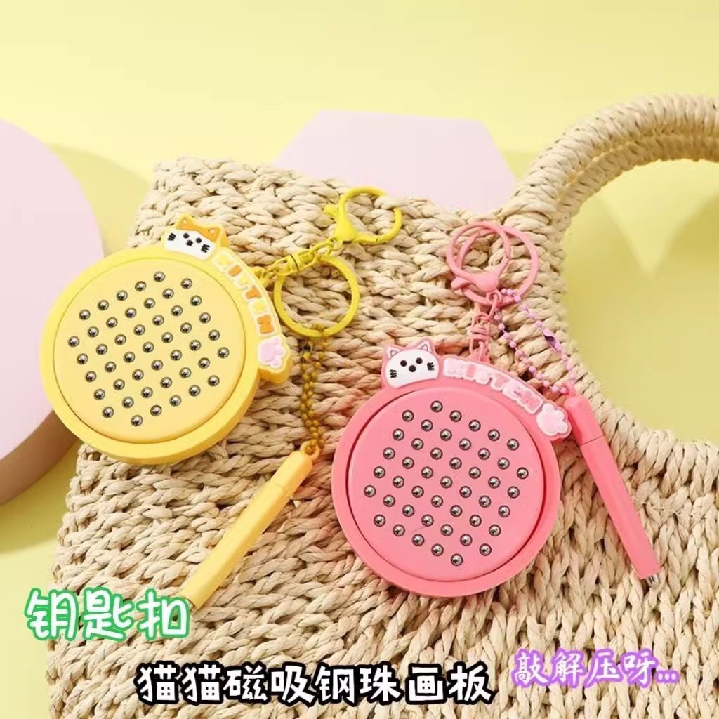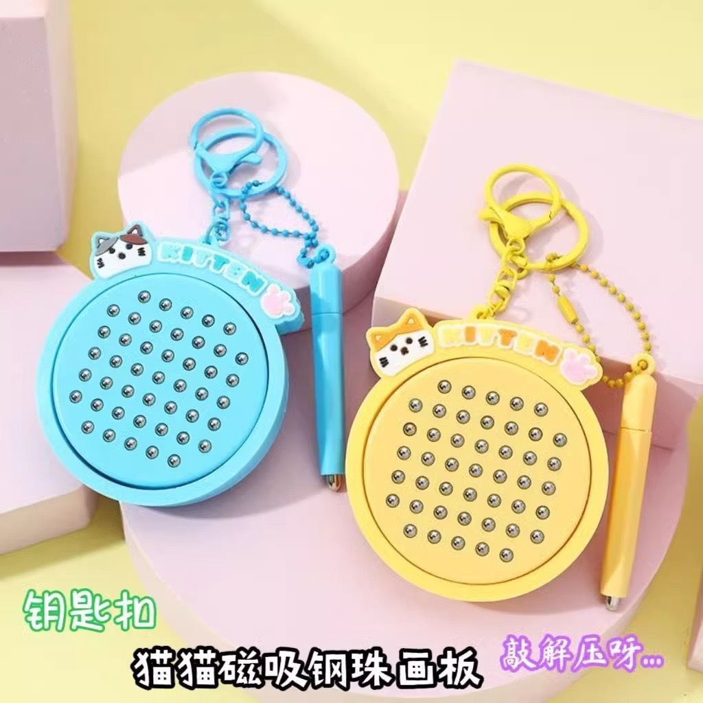 자석 스틸 볼 드로잉 보드 Nezha 고양이 열쇠 고리 펜던트 미니 감압 작은 선물 학교 가방 펜던트 열쇠 고리스토어 가기