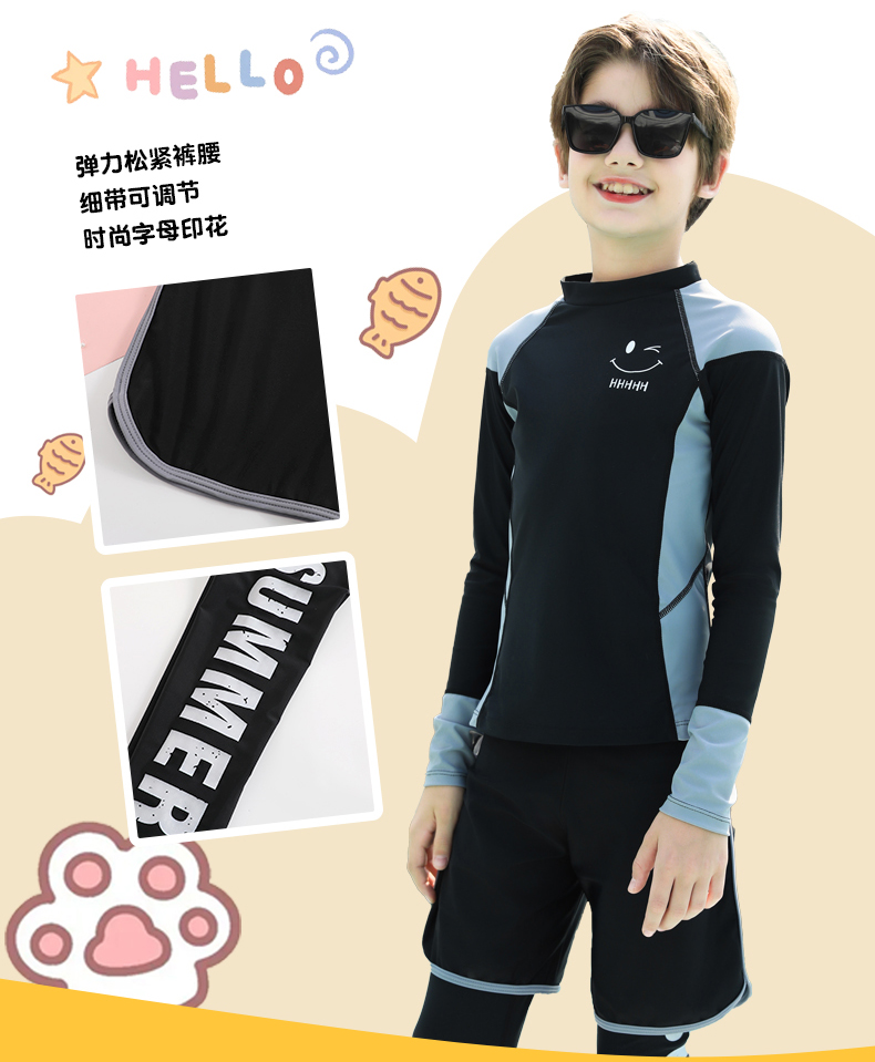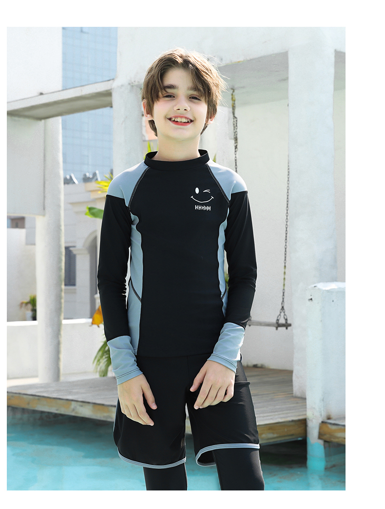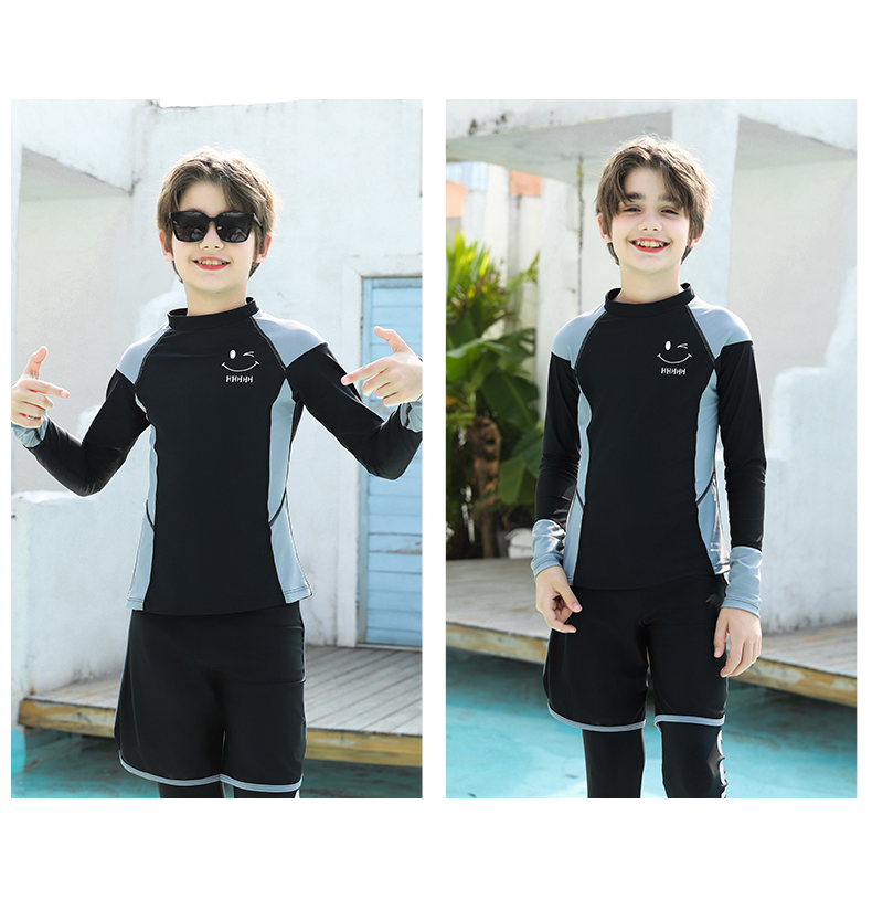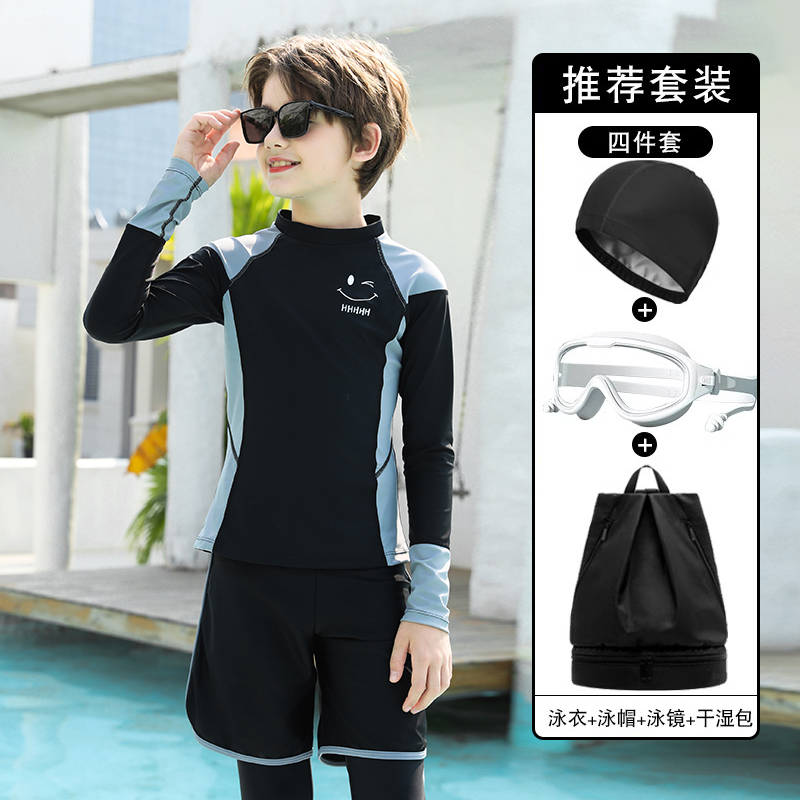 어린이 수영복 소년 중대형 어린이 및 청소년 긴팔 바지 3 피스 세트 upf50 자외선 차단제 온천 소년 수영복스토어 가기