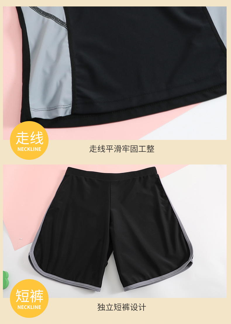 • <<블랙/그레이(탑+바지+쿼터팬츠) + 수영모 + 대형 프레임 수영 고글>>