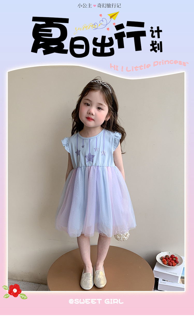 여자 여름 조끼 원피스 2025 새로운 어린이 공주 원피스 서양식 민소매 조끼 아기의 여름 원피스스토어 가기