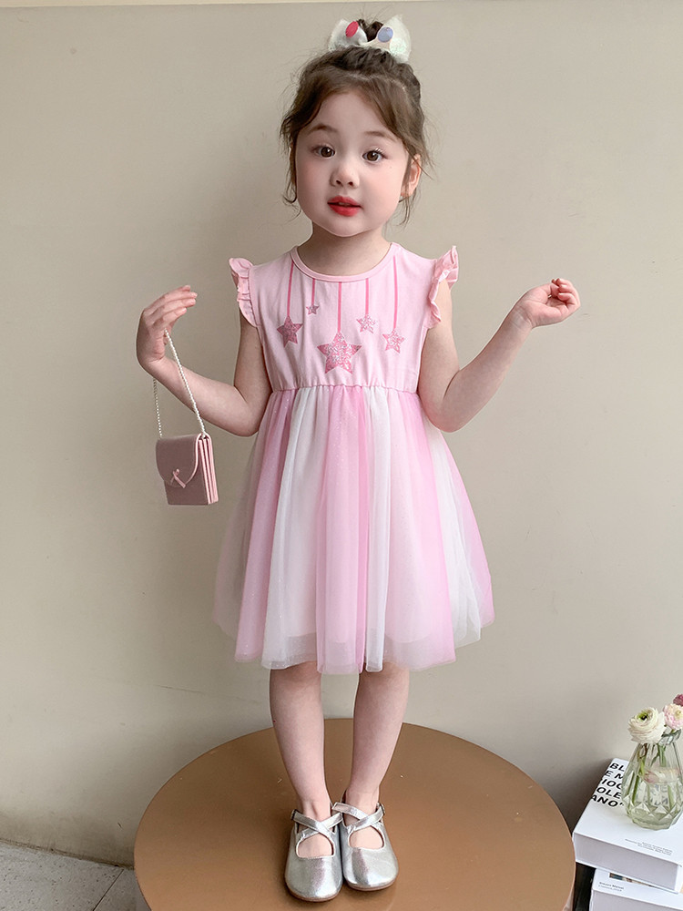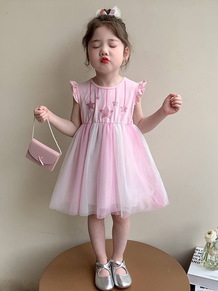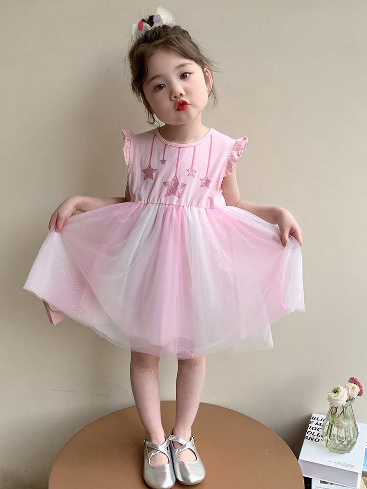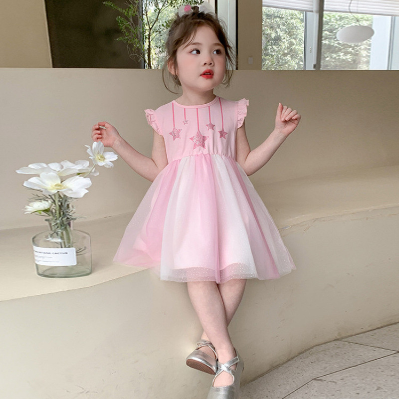 여자 여름 조끼 원피스 2025 새로운 어린이 공주 원피스 서양식 민소매 조끼 아기의 여름 원피스