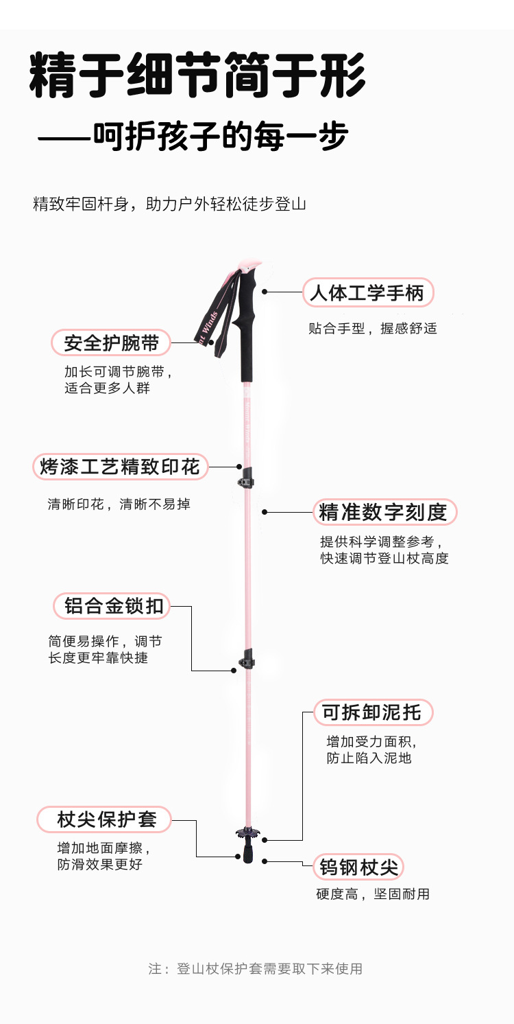 가볍고 안정적인 마카롱 시리즈 7075 어린이 등산 스틱 텔레스코픽 등산 장비 여성용 초경량 알루미늄 합금