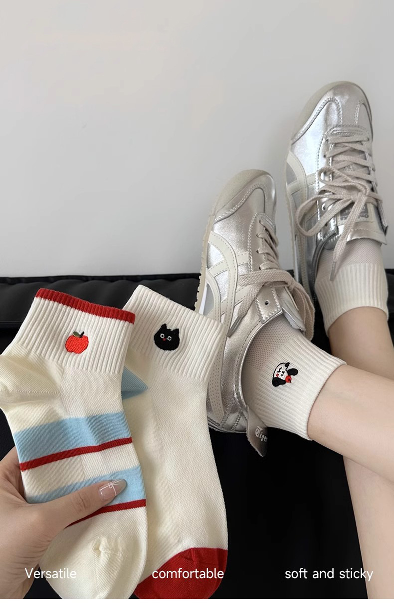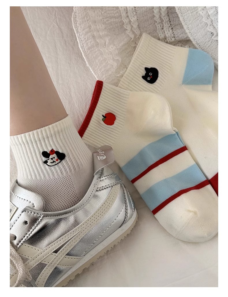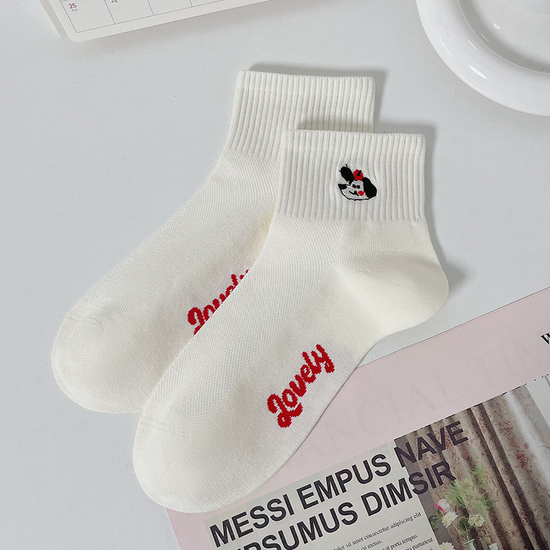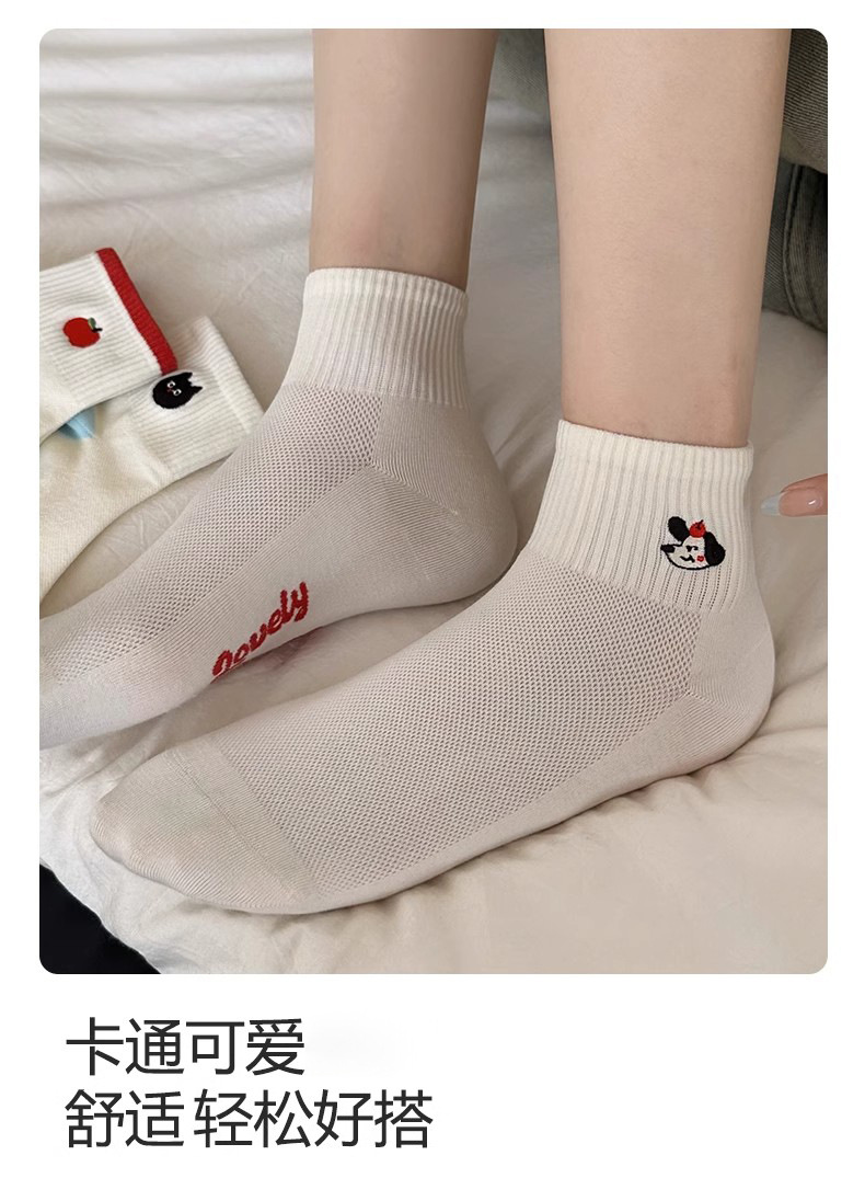 여성용 흰색 귀여운 양말 봄 여름 다용도 얇은 한국식 메쉬 스포츠 양말 트렌디 만화 로우 컷 짧은 튜브스토어 가기