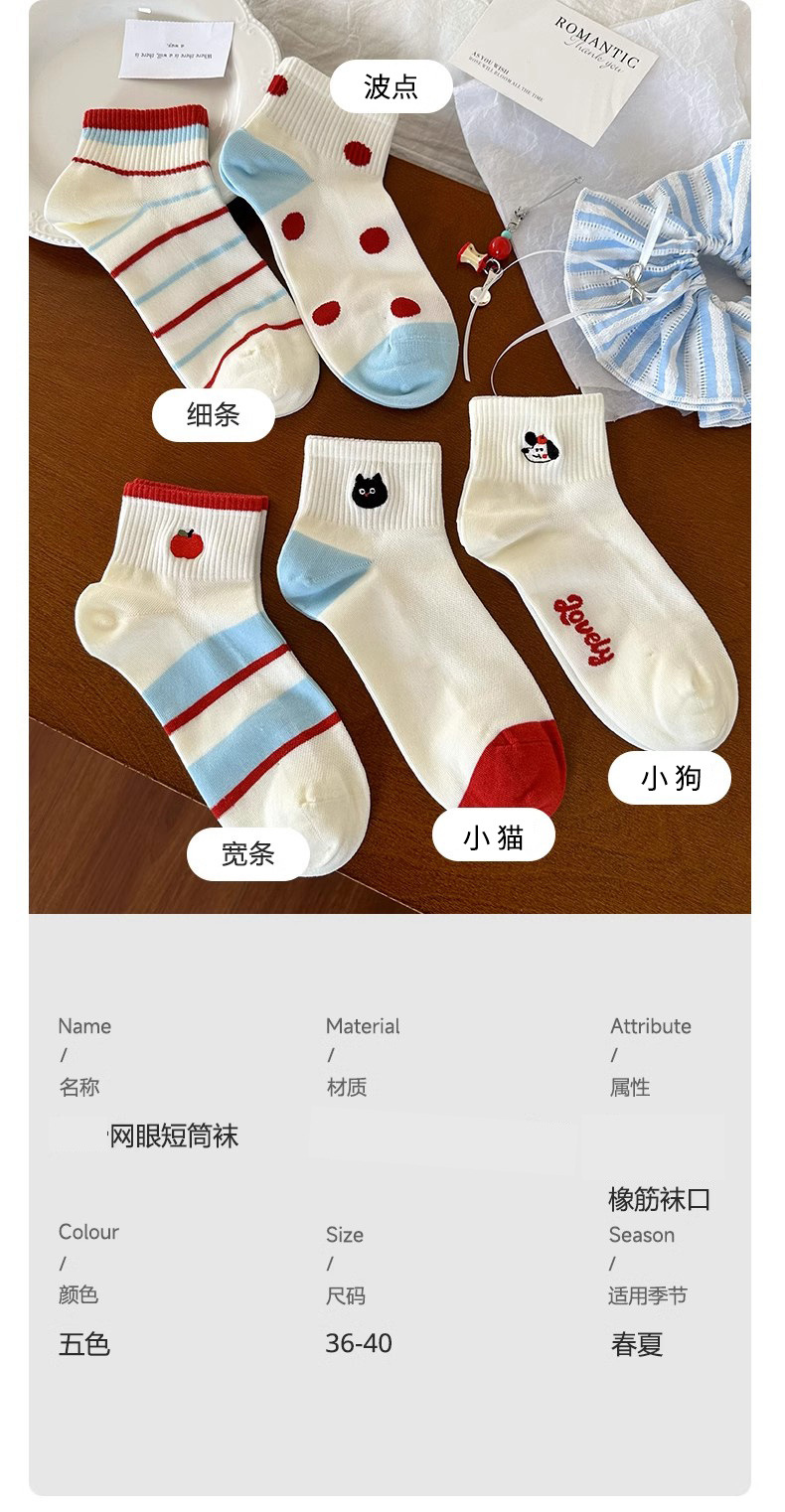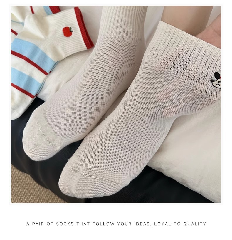 여성용 흰색 귀여운 양말 봄 여름 다용도 얇은 한국식 메쉬 스포츠 양말 트렌디 만화 로우 컷 짧은 튜브