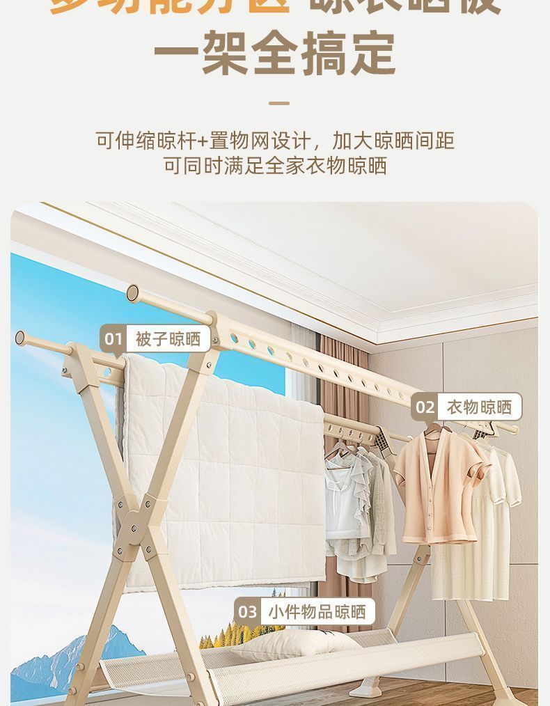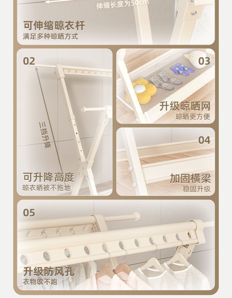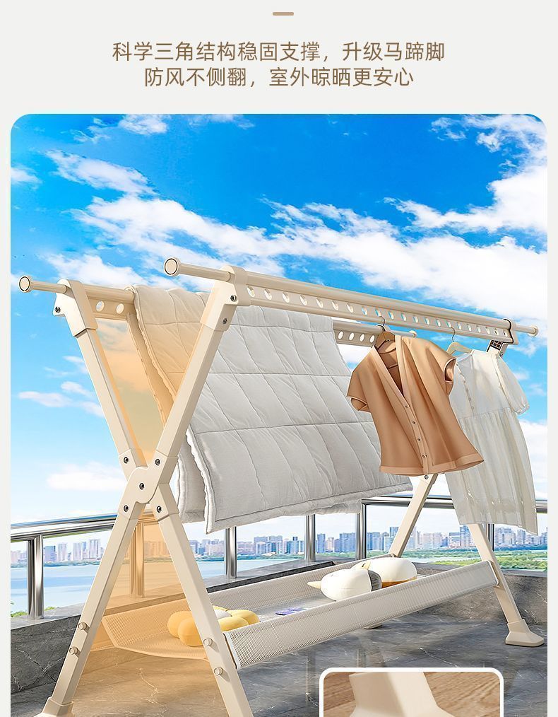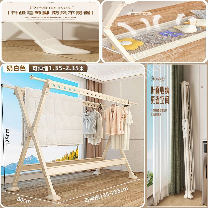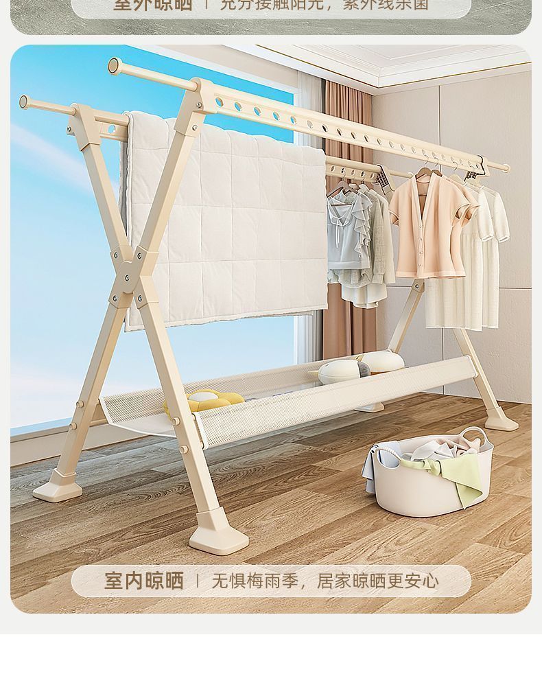 Yijia 좋은 아내 가정용 개폐식 바닥 형 건조용 옷걸이 방풍 굵은 발코니 접이식 건조 퀼트 유물