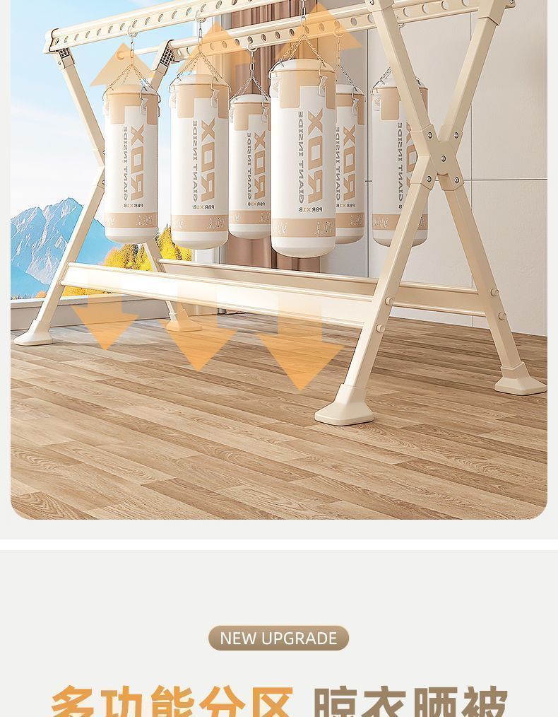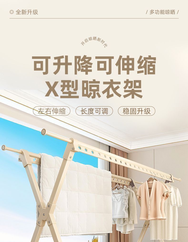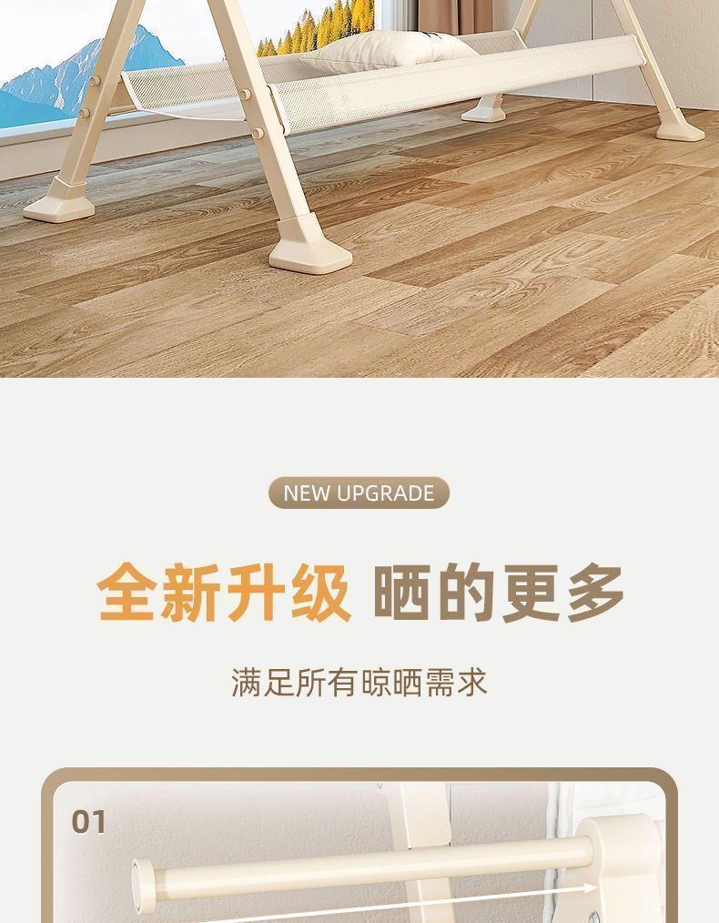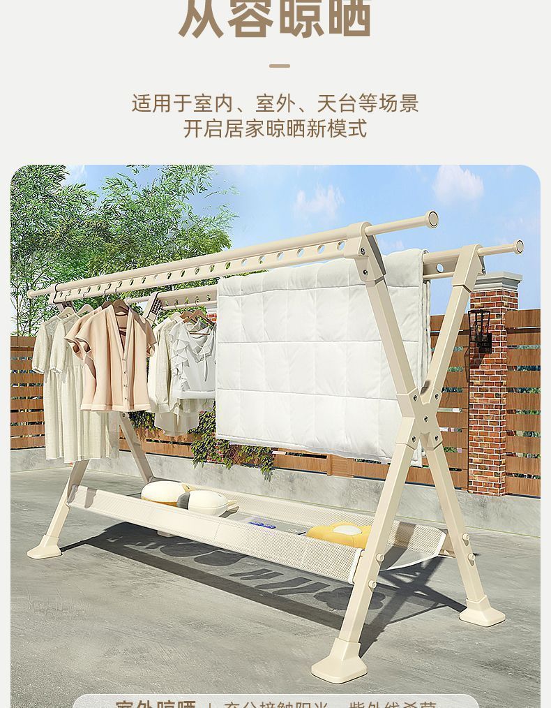 Yijia 좋은 아내 가정용 개폐식 바닥 형 건조용 옷걸이 방풍 굵은 발코니 접이식 건조 퀼트 유물