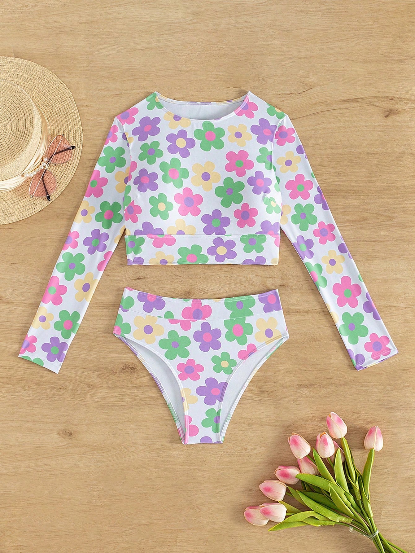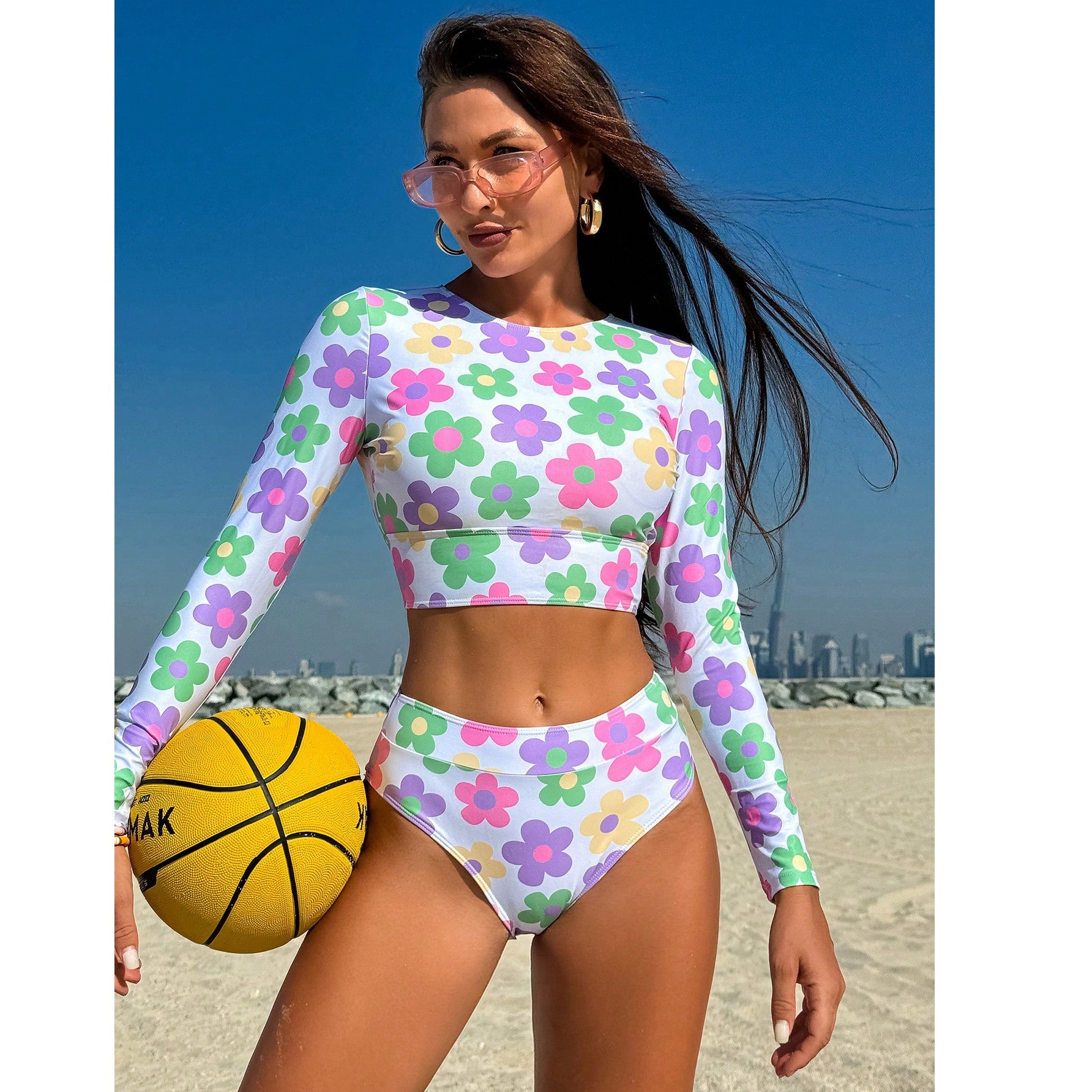 2025 새로운 크로스보더 유럽과 미국 스플릿 여성 수영복 섹시한 긴팔 수영복 보수적 인 수영복 서핑 멀티 컬러