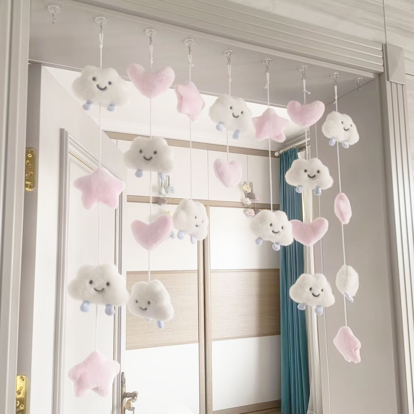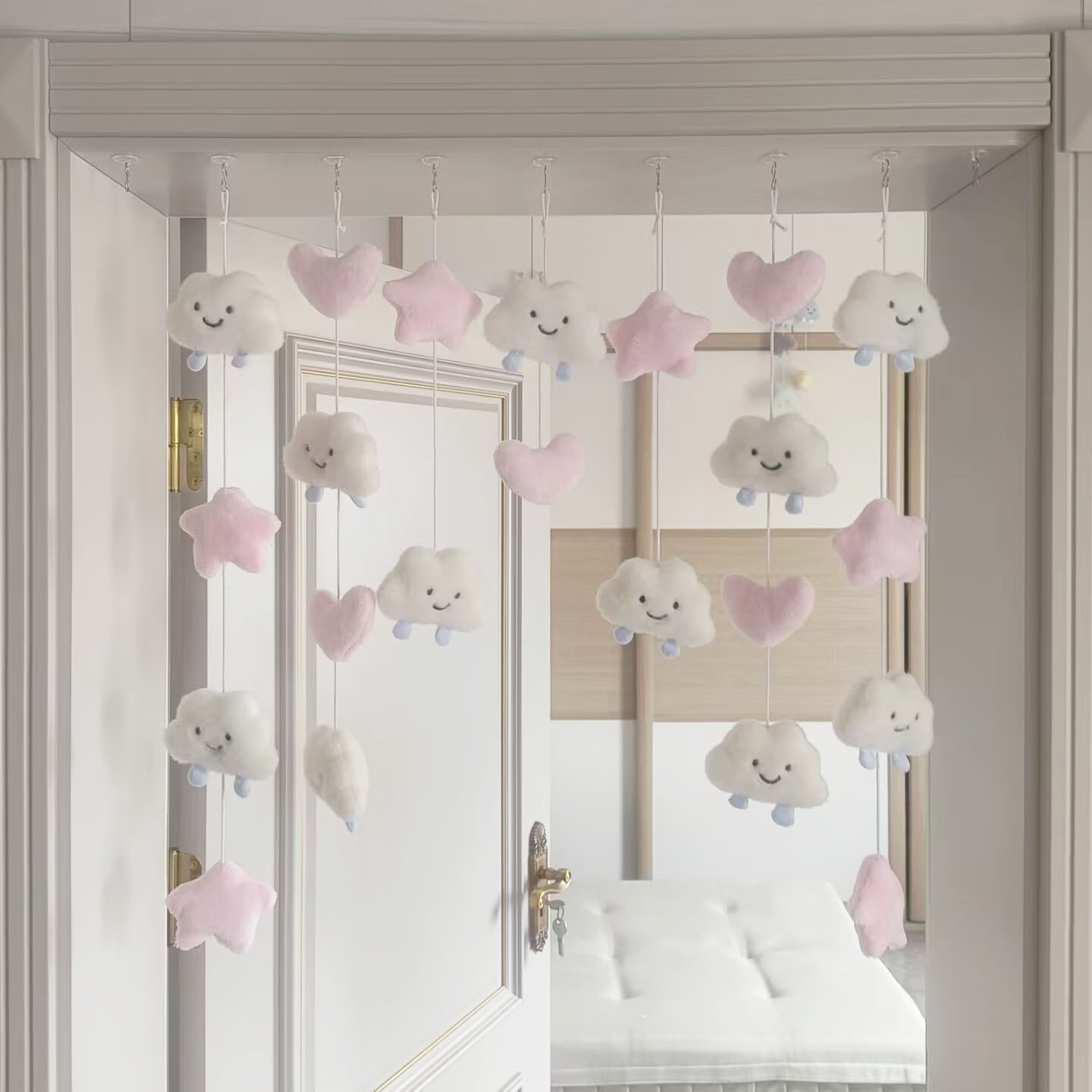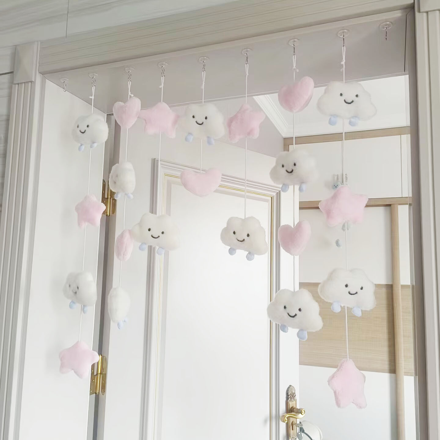 • 커튼 헤드가 달린 귀여운 구름 핑크 하트 벨크로