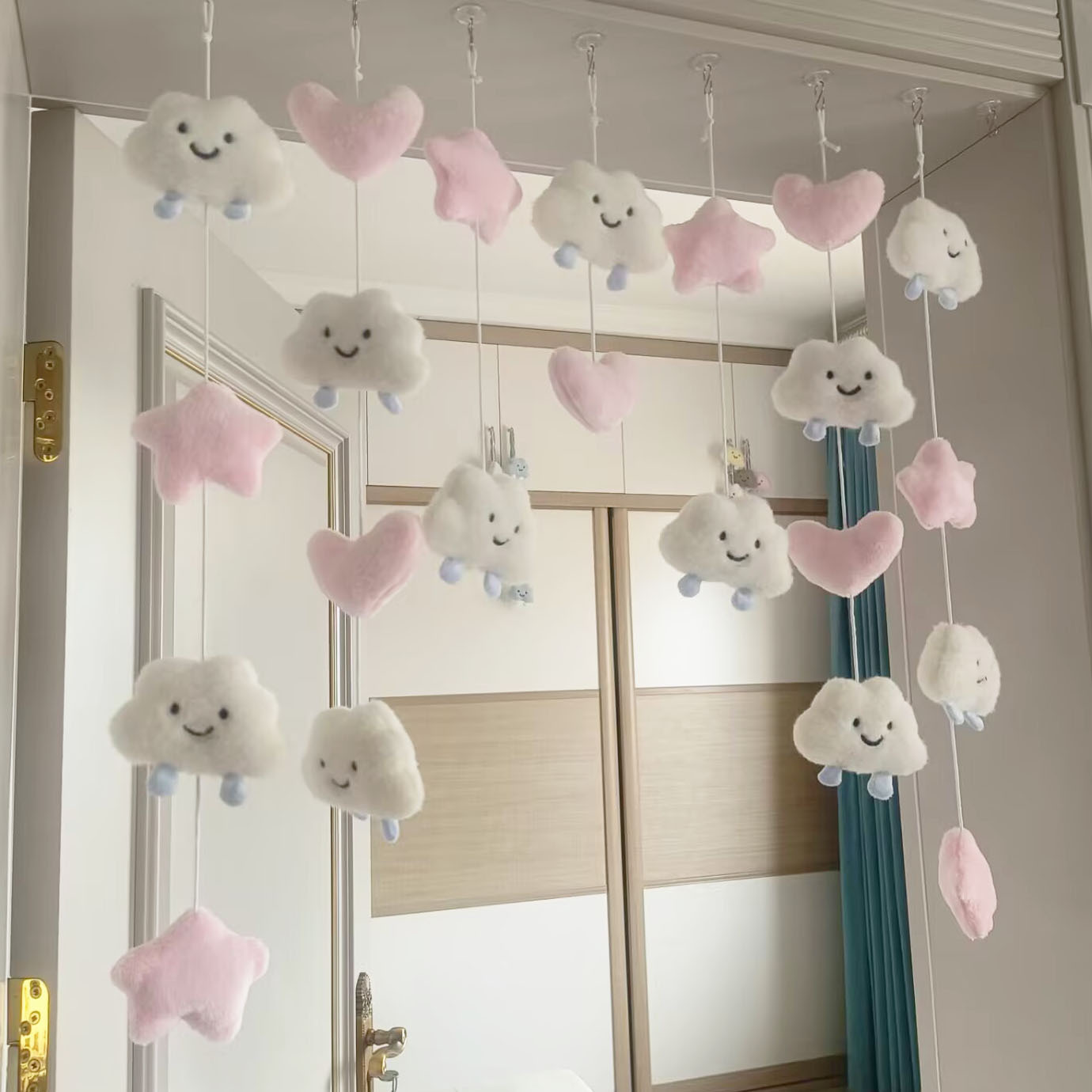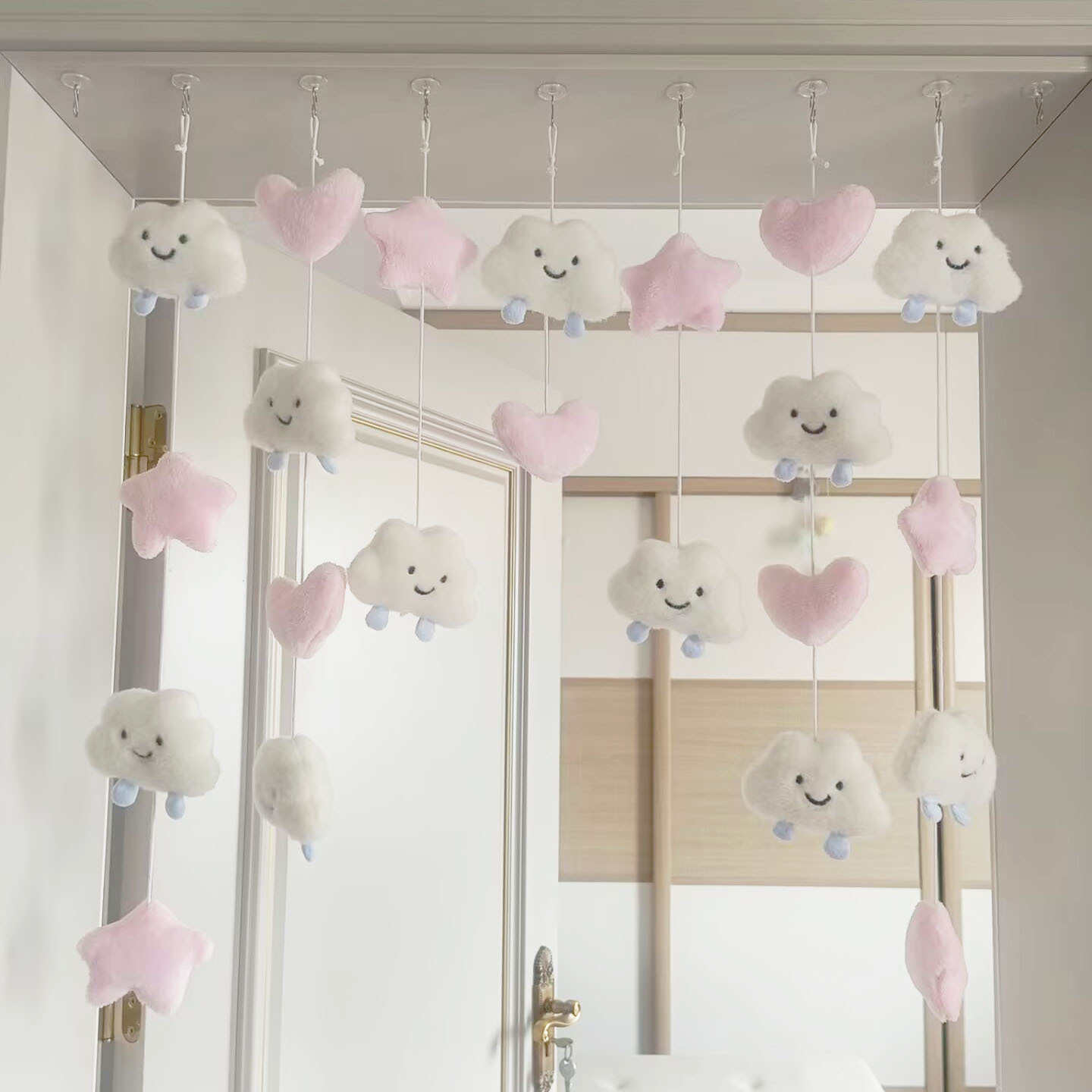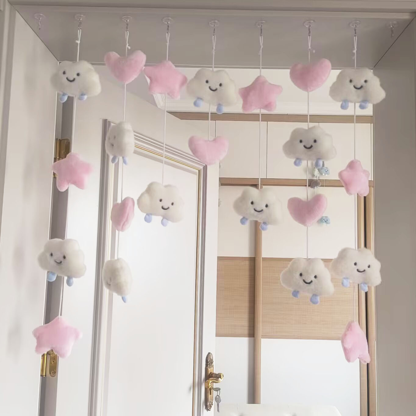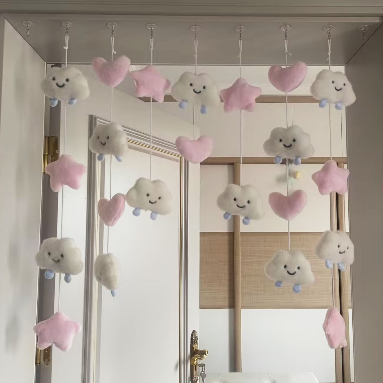 • 커튼 헤드가 달린 귀여운 구름 핑크 하트 벨크로