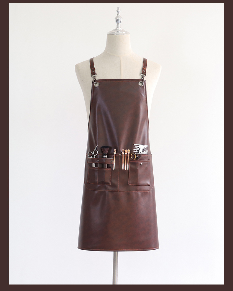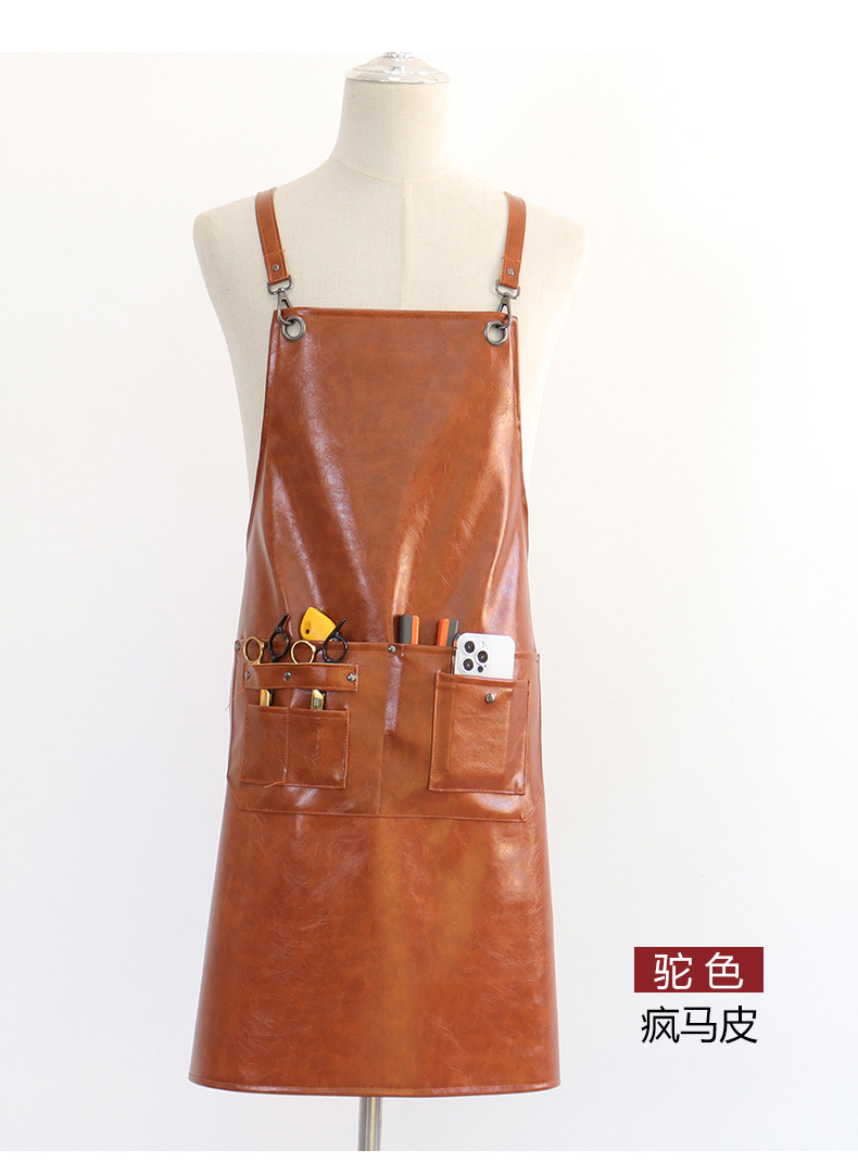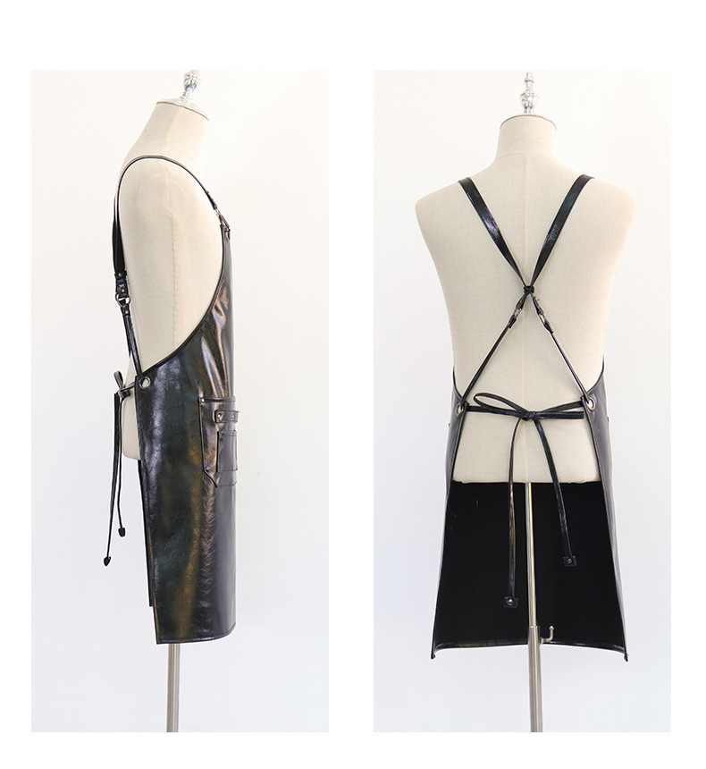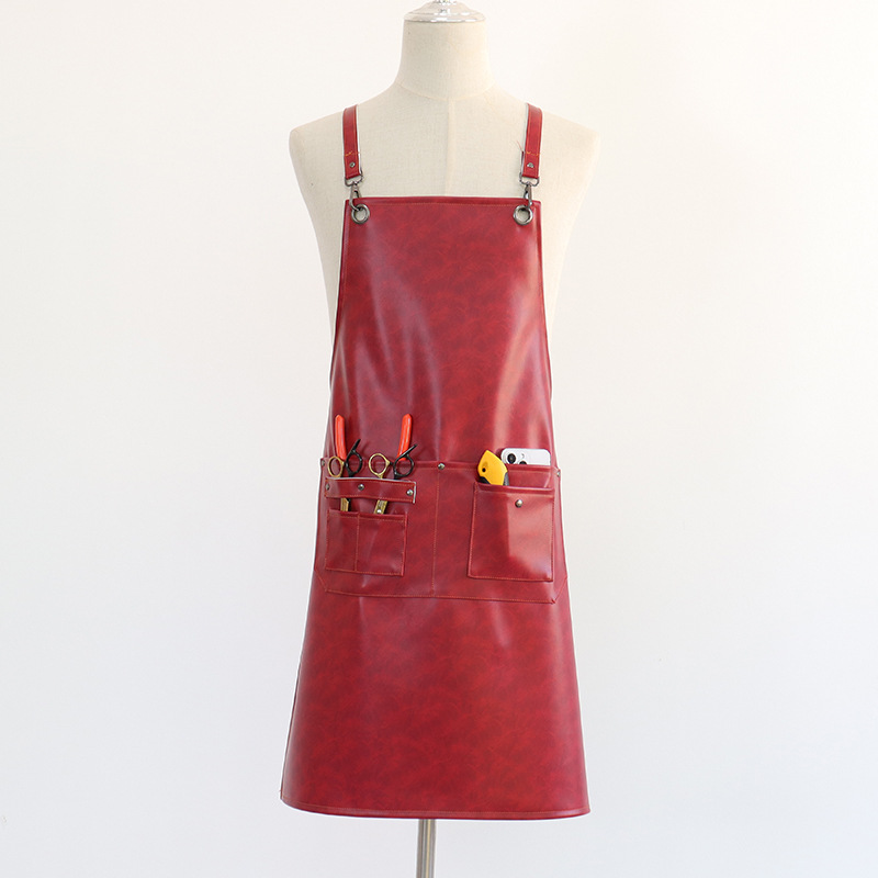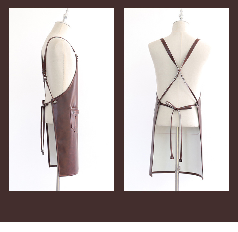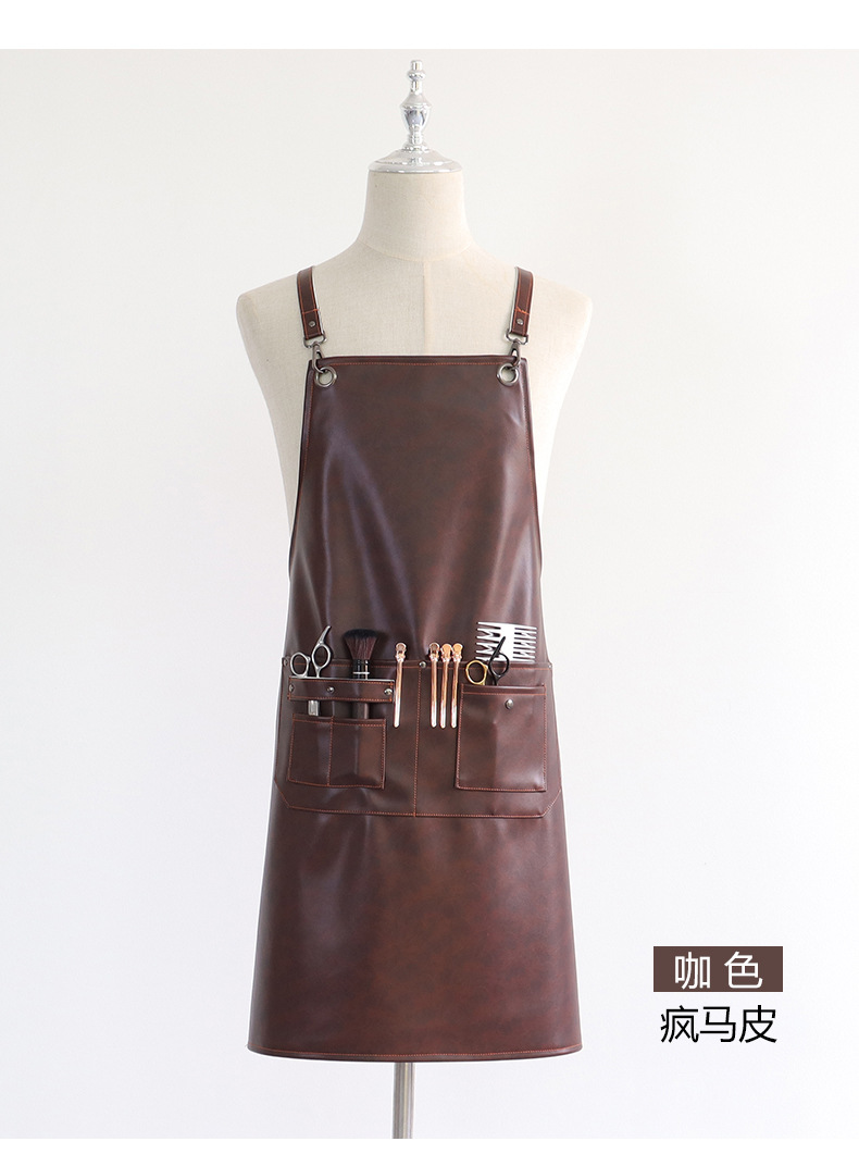 아마존 이발사 방수 앞치마 도매 커피 숍 애완 동물 미용 pu 가죽 작업복 사용자 정의 로고스토어 가기