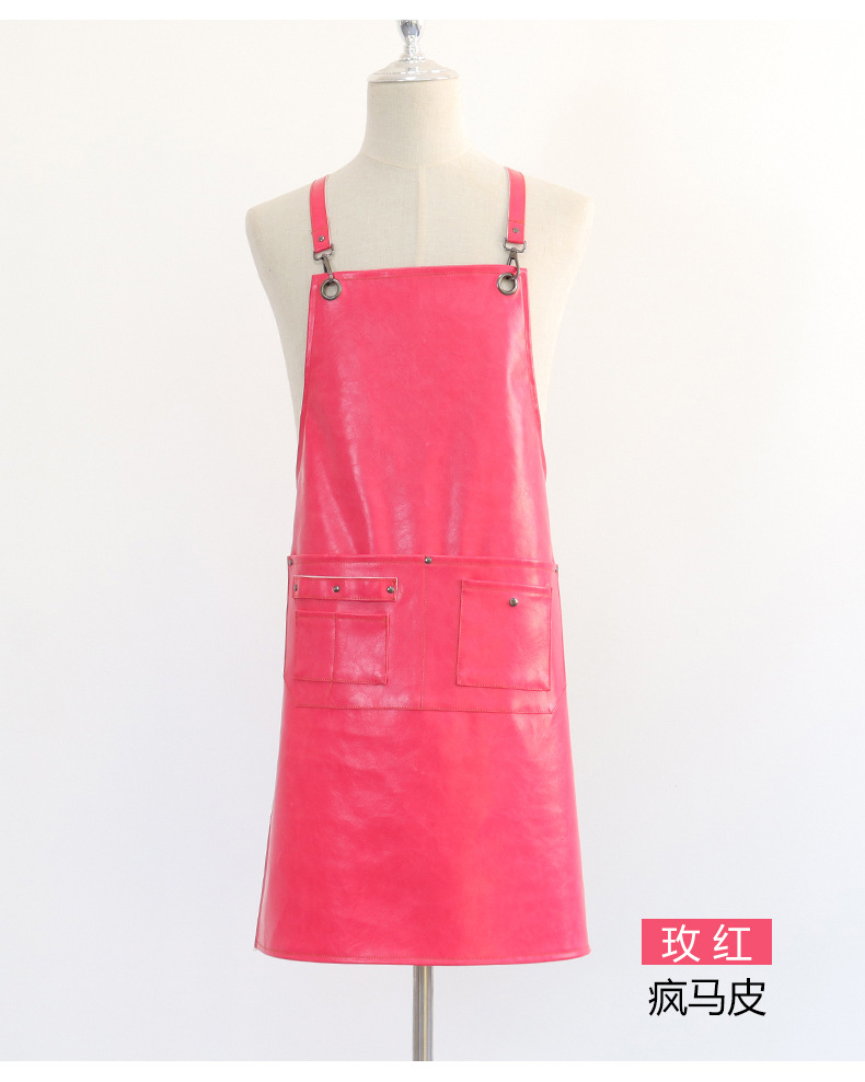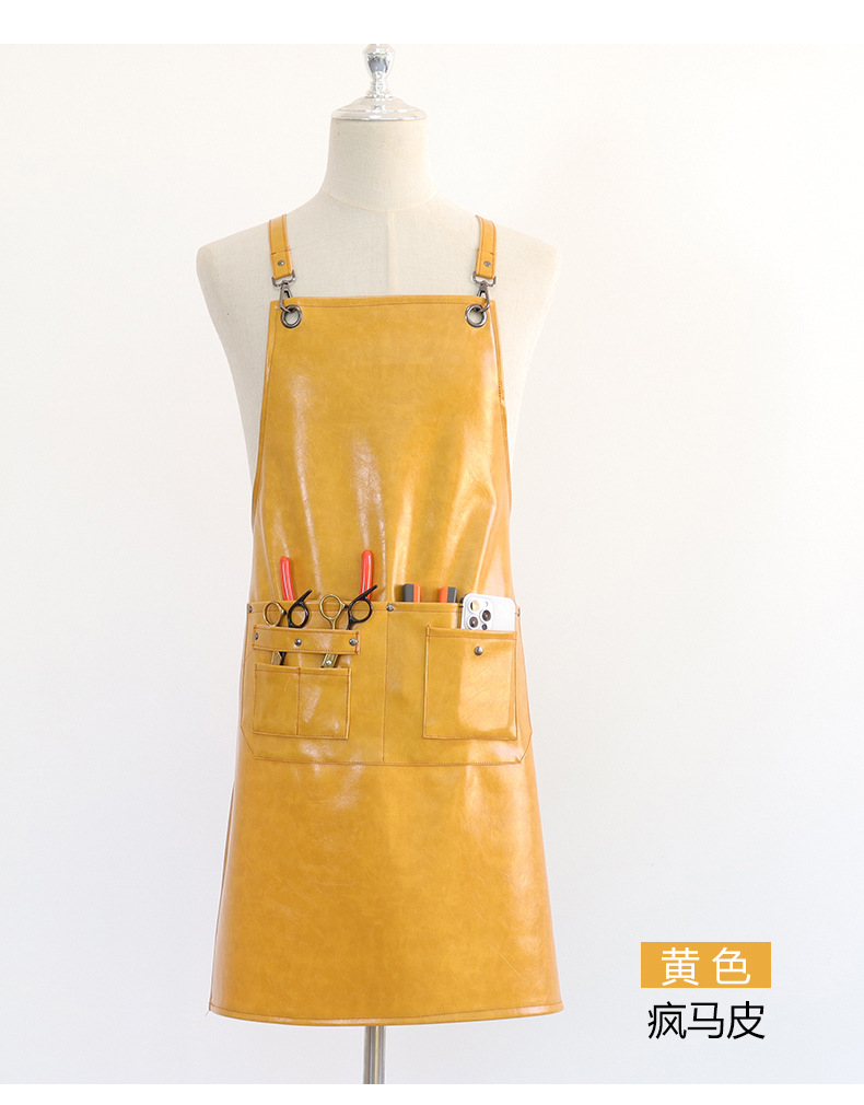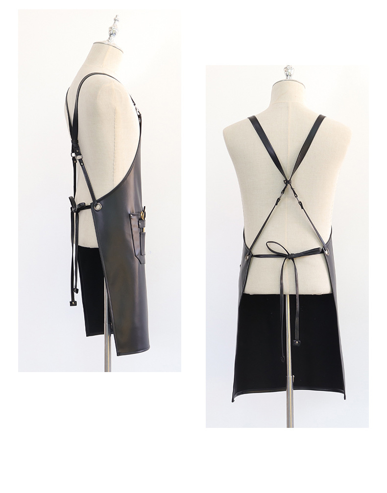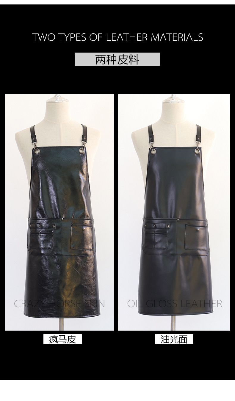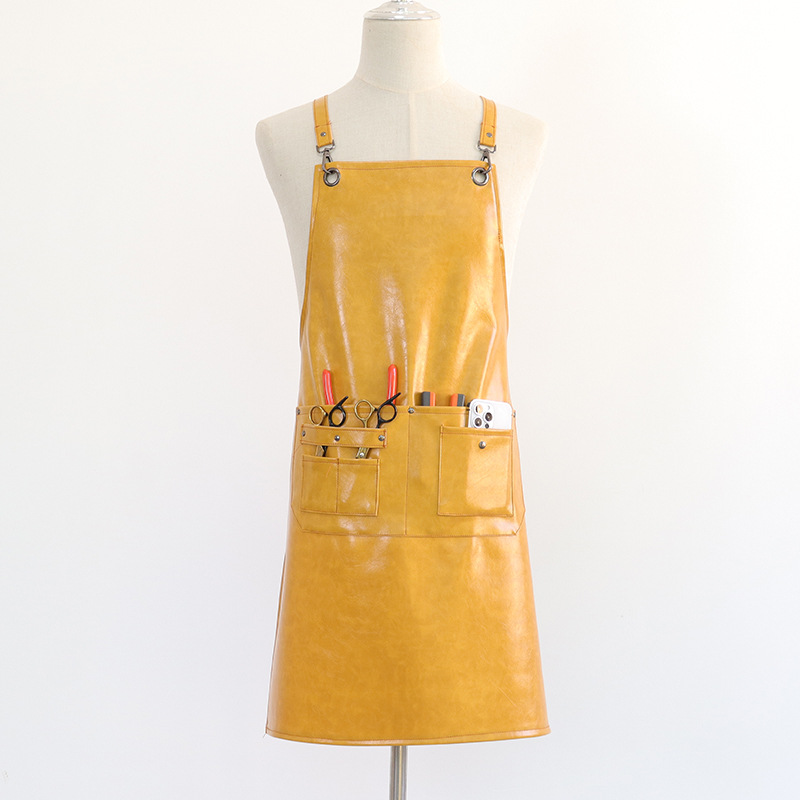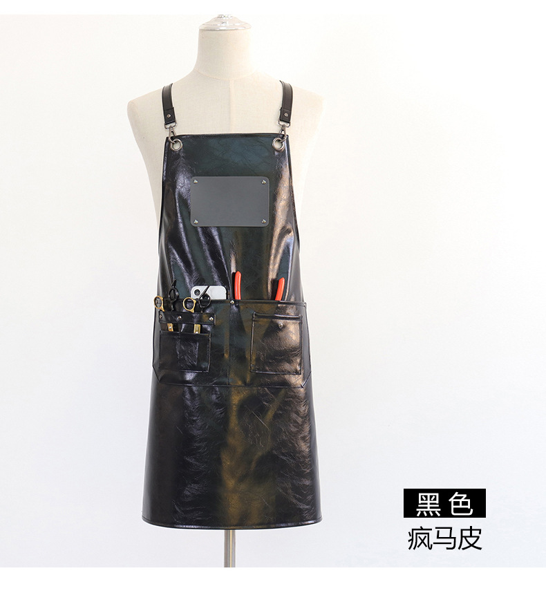 아마존 이발사 방수 앞치마 도매 커피 숍 애완 동물 미용 pu 가죽 작업복 사용자 정의 로고스토어 가기