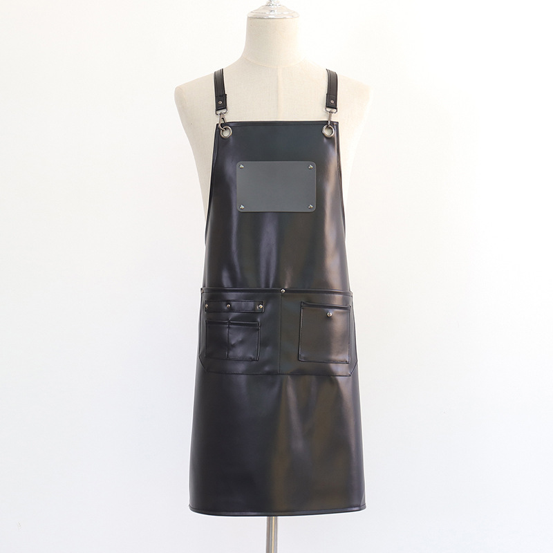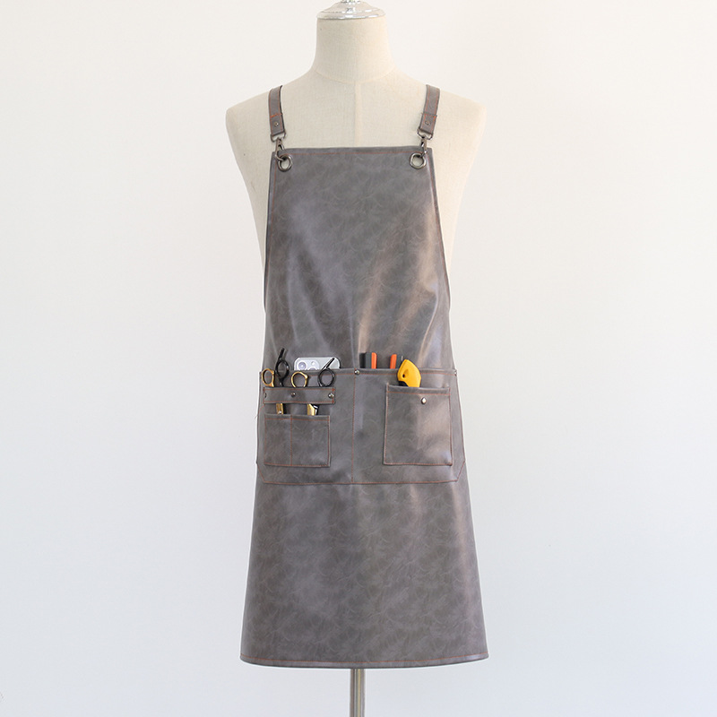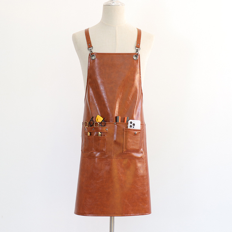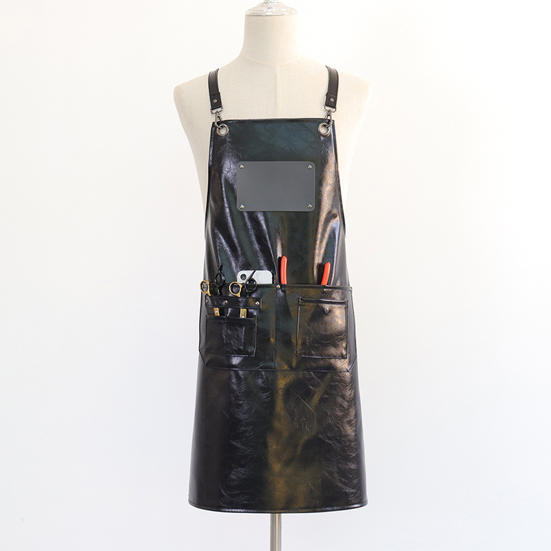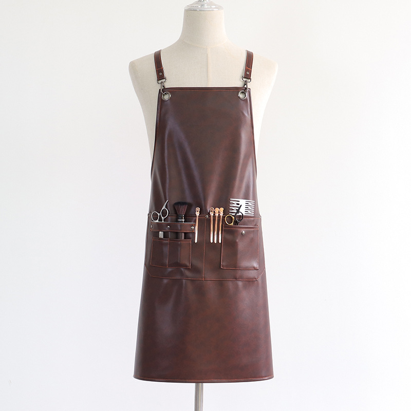아마존 이발사 방수 앞치마 도매 커피 숍 애완 동물 미용 pu 가죽 작업복 사용자 정의 로고