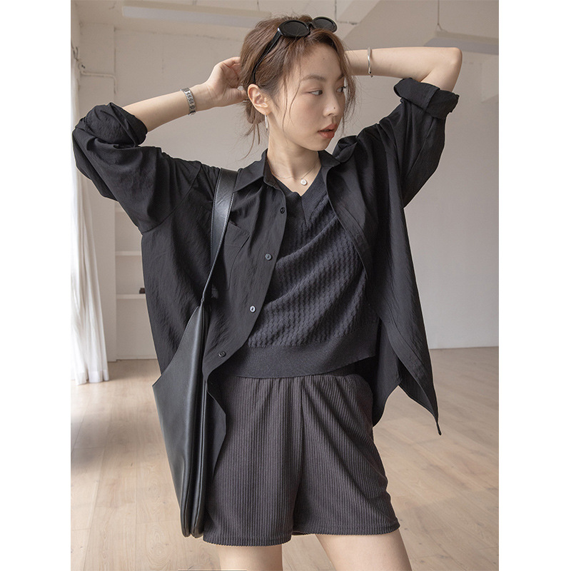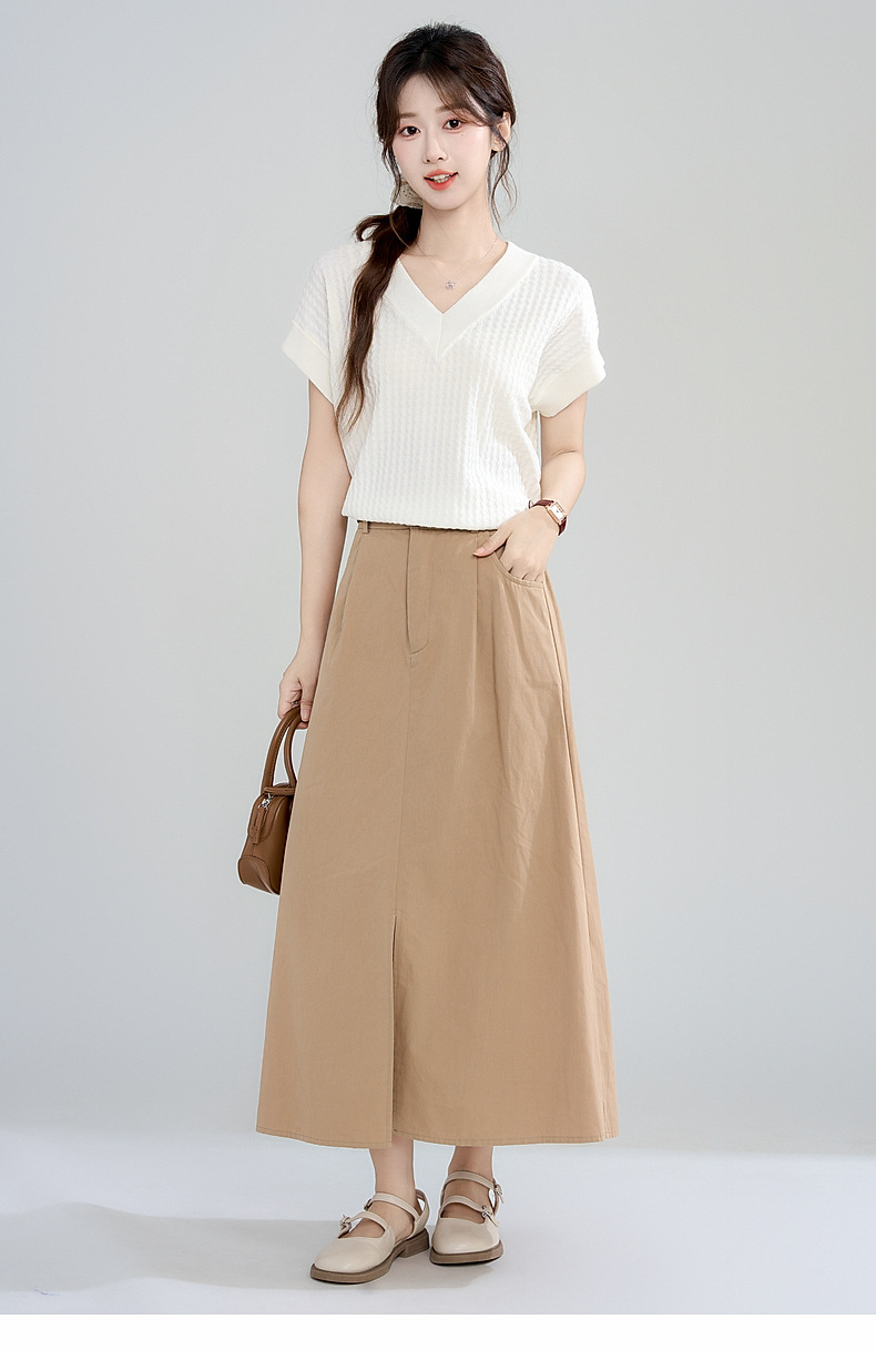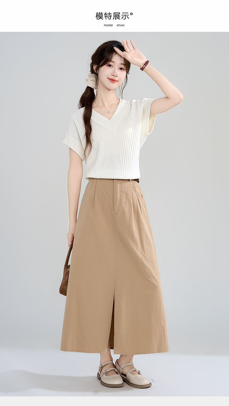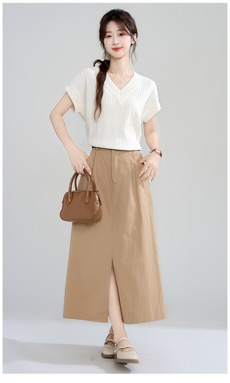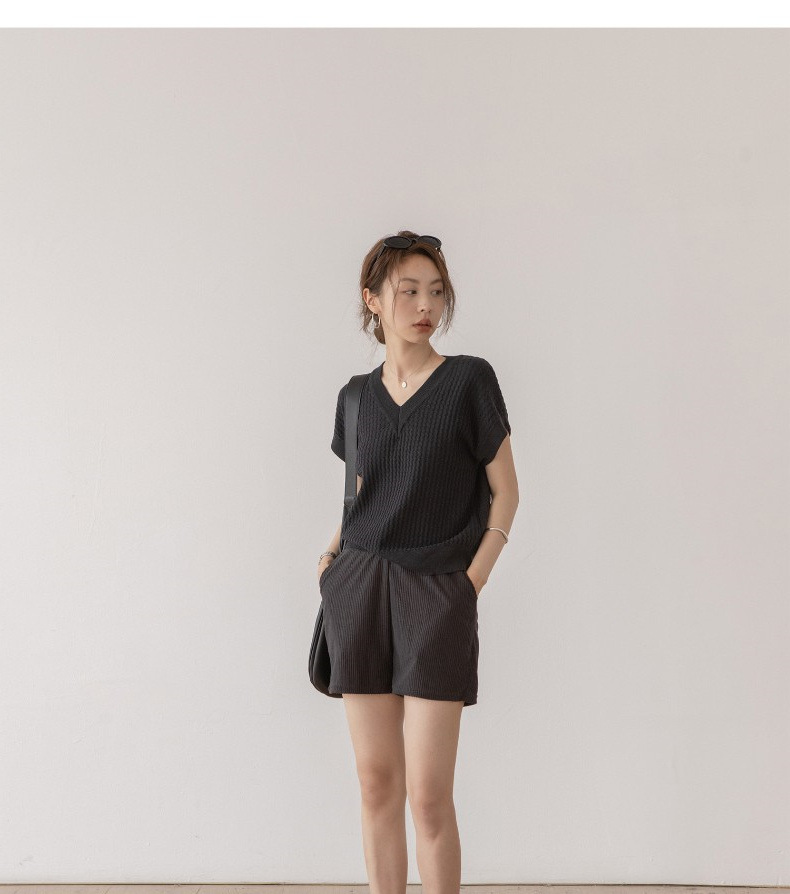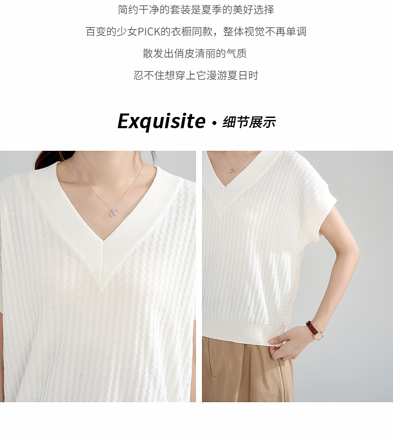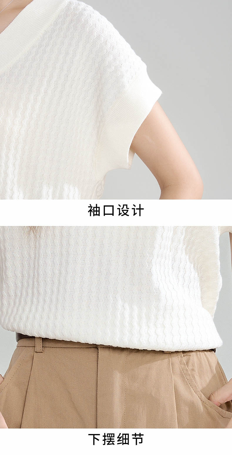 2025 여성용 다용도 봄 여름 신상 프렌치 브이넥 니트 반팔 티셔츠, 루즈하고 슬림하며 활용도가 높은 질감의 탑스토어 가기