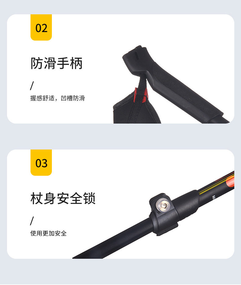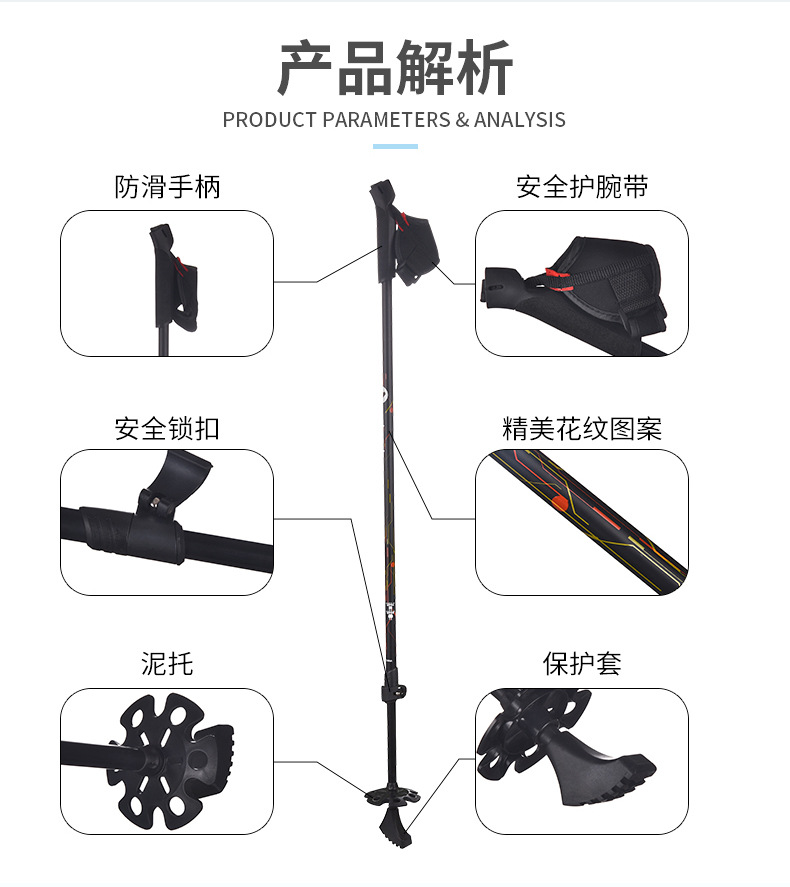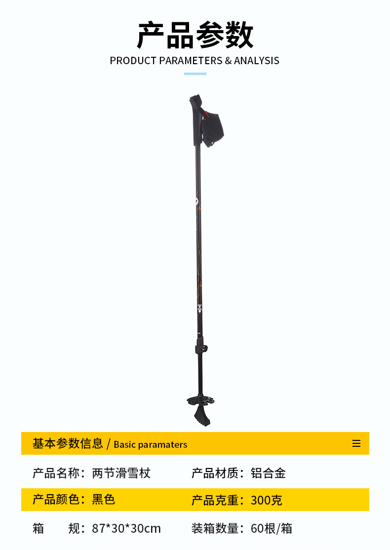 알루미늄 합금 이중판 스키 스틱, 다기능 스키 지팡이, 휴대용 등산 스틱, 충격 흡수 지팡이