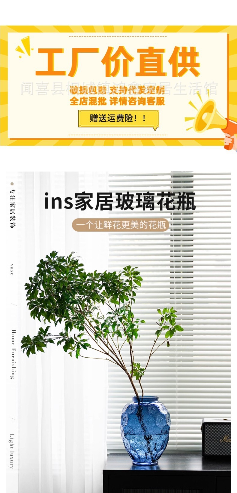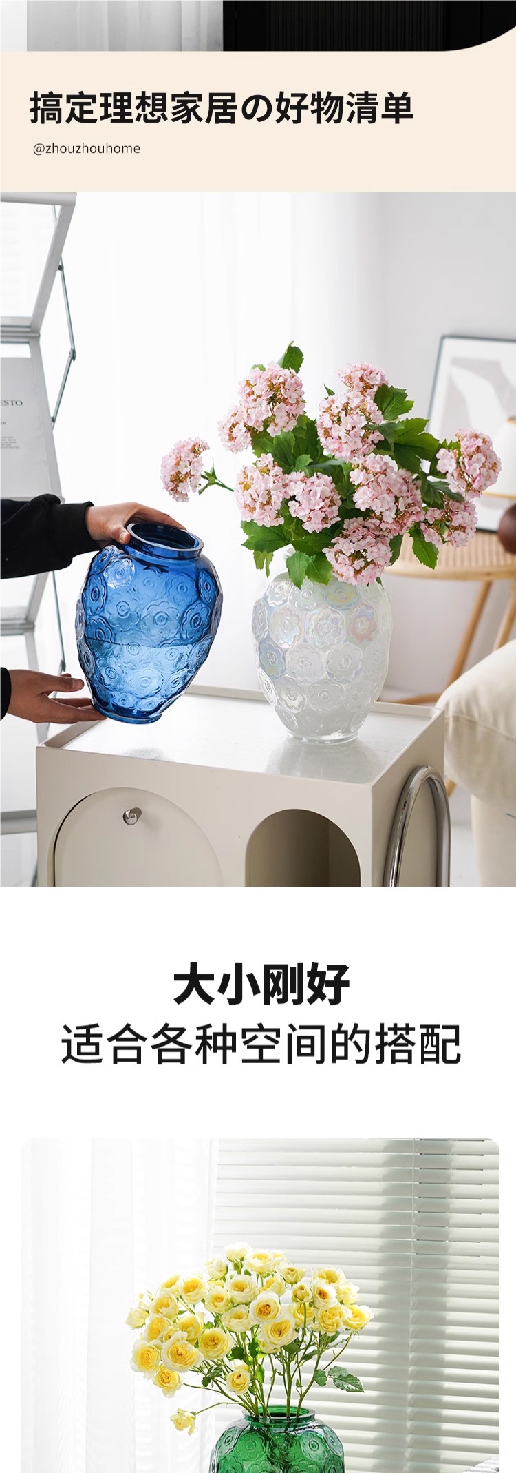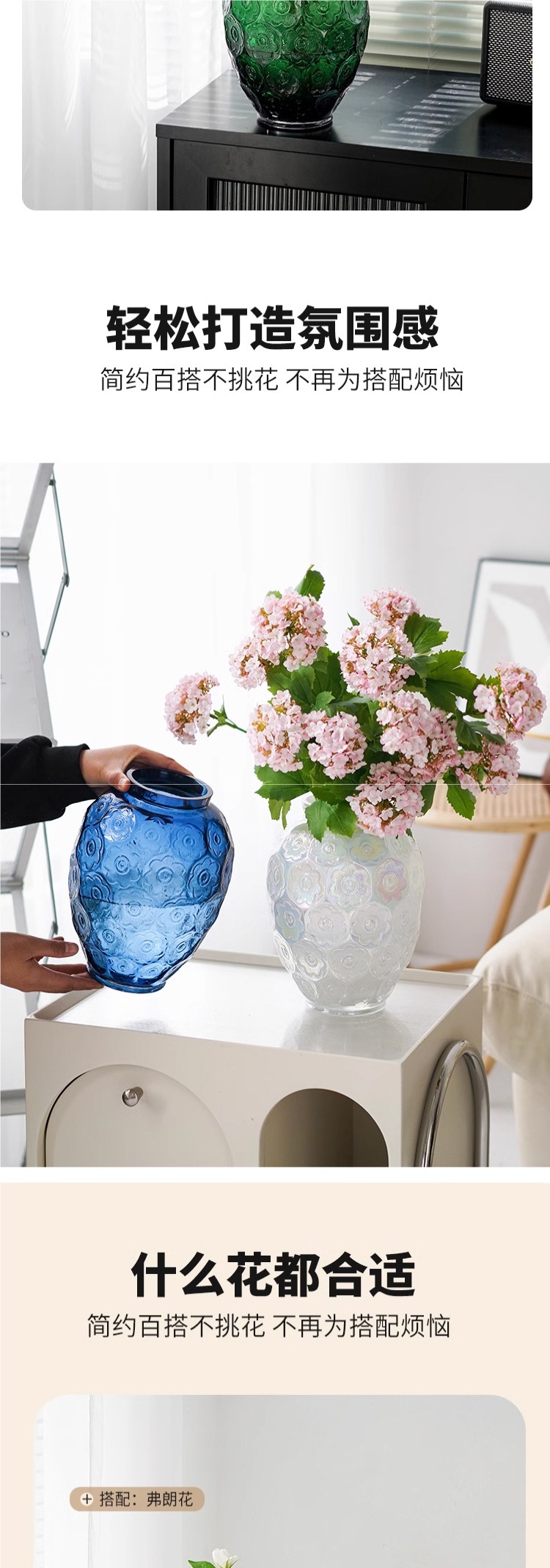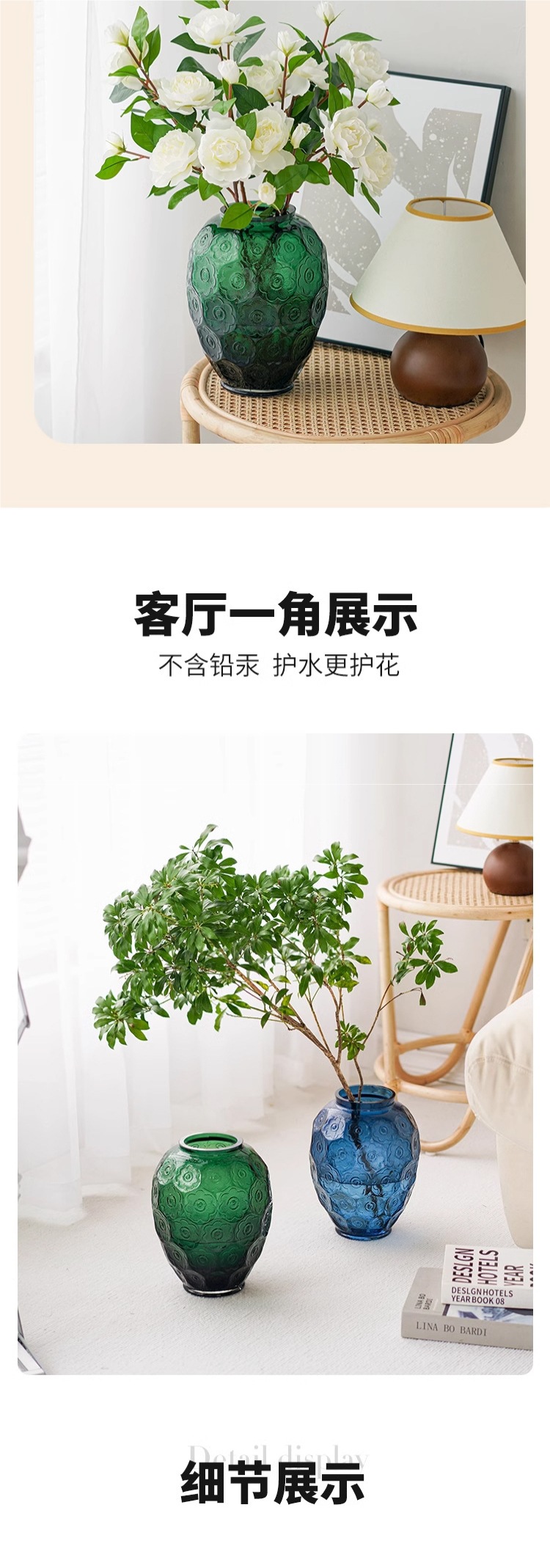 새로운 중국 스타일의 양각 꽃병 유리 고급 꽃병 장식품 꽃병 꽃꽂이 고급 데스크탑 홈 장식스토어 가기