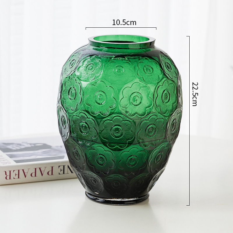 새로운 중국 스타일의 양각 꽃병 유리 고급 꽃병 장식품 꽃병 꽃꽂이 고급 데스크탑 홈 장식