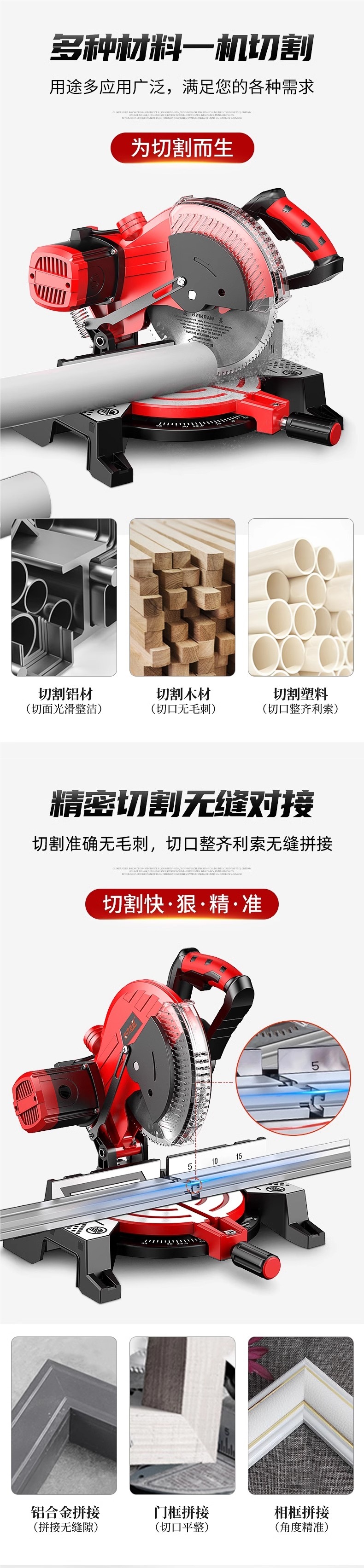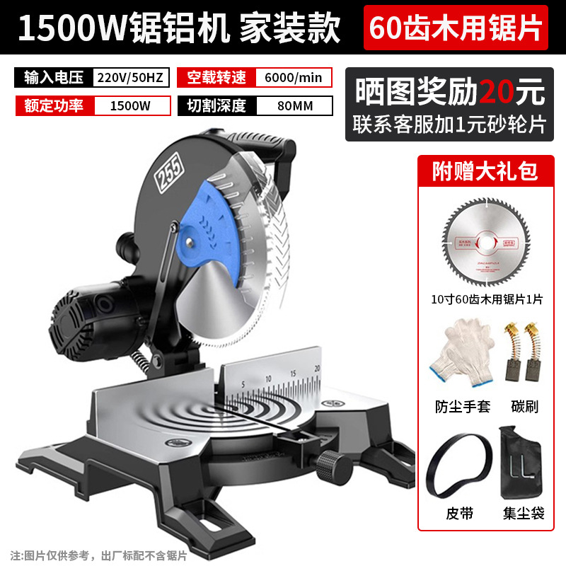 알루미늄 톱 기계 고정밀 다기능 목재 알루미늄 알루미늄 합금 절단기 10 인치 255 소형 45도 경사 8극
