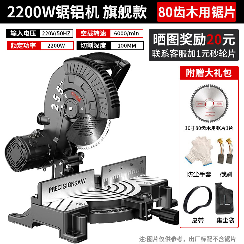 알루미늄 톱 기계 고정밀 다기능 목재 알루미늄 알루미늄 합금 절단기 10 인치 255 소형 45도 경사 8극스토어 가기