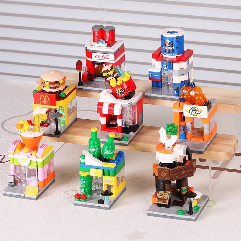 유럽 비즈니스 라이프 스트리트 시티 빌딩 스트리트 뷰 빌딩 블록 호환 레고 모델 키즈 장난감 소년 선물스토어 가기