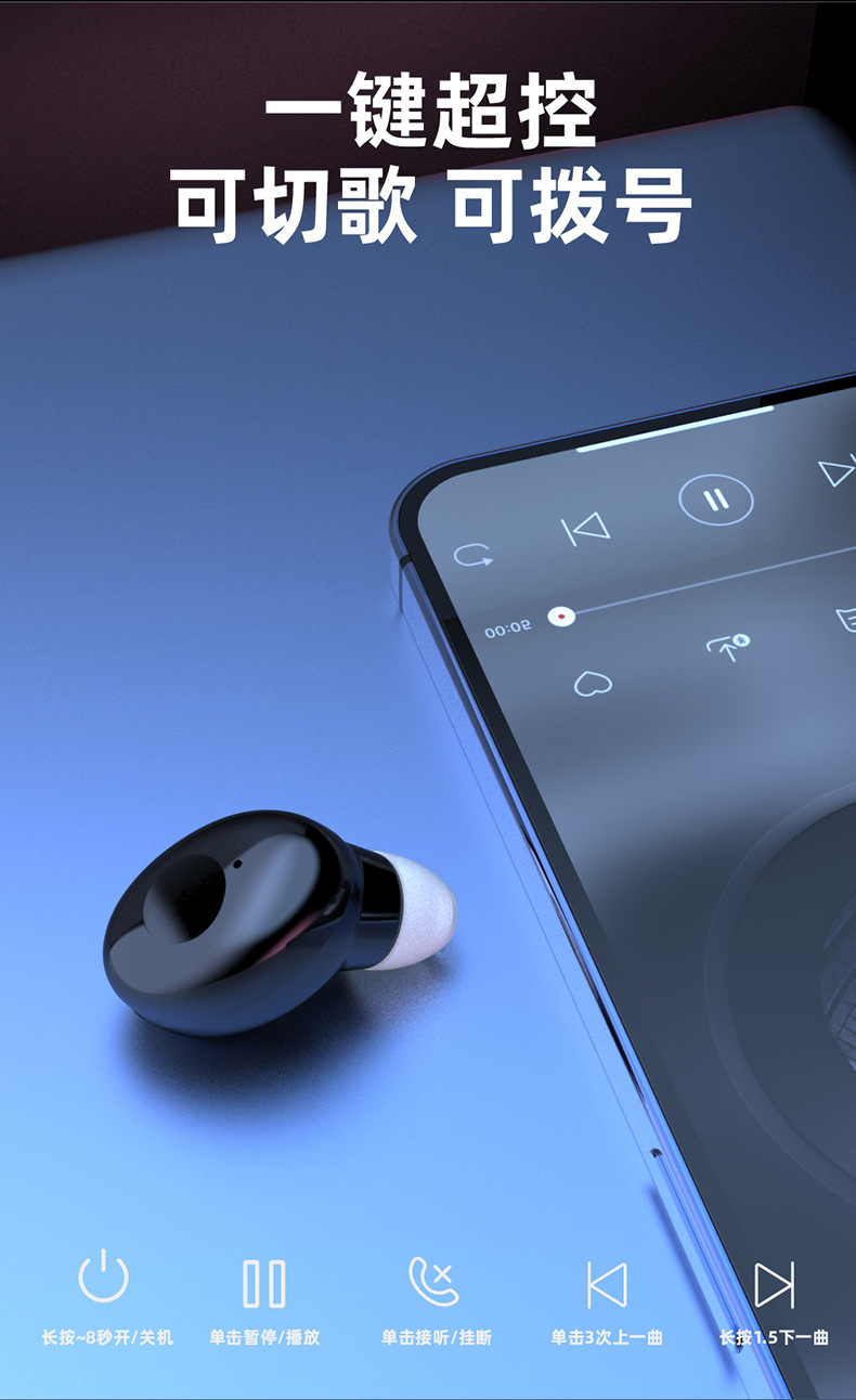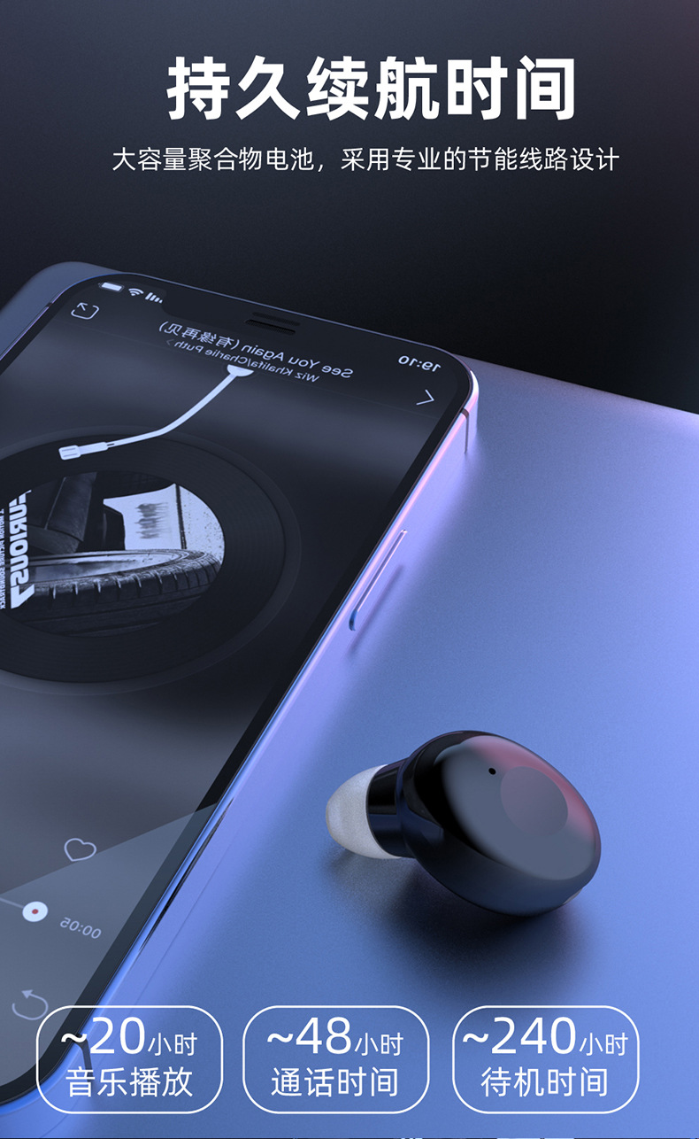 새로운 블루투스 헤드셋 미니 싱글 이어 슈퍼 긴 대기 수명 이어폰형 크로스보더 드롭쉬핑