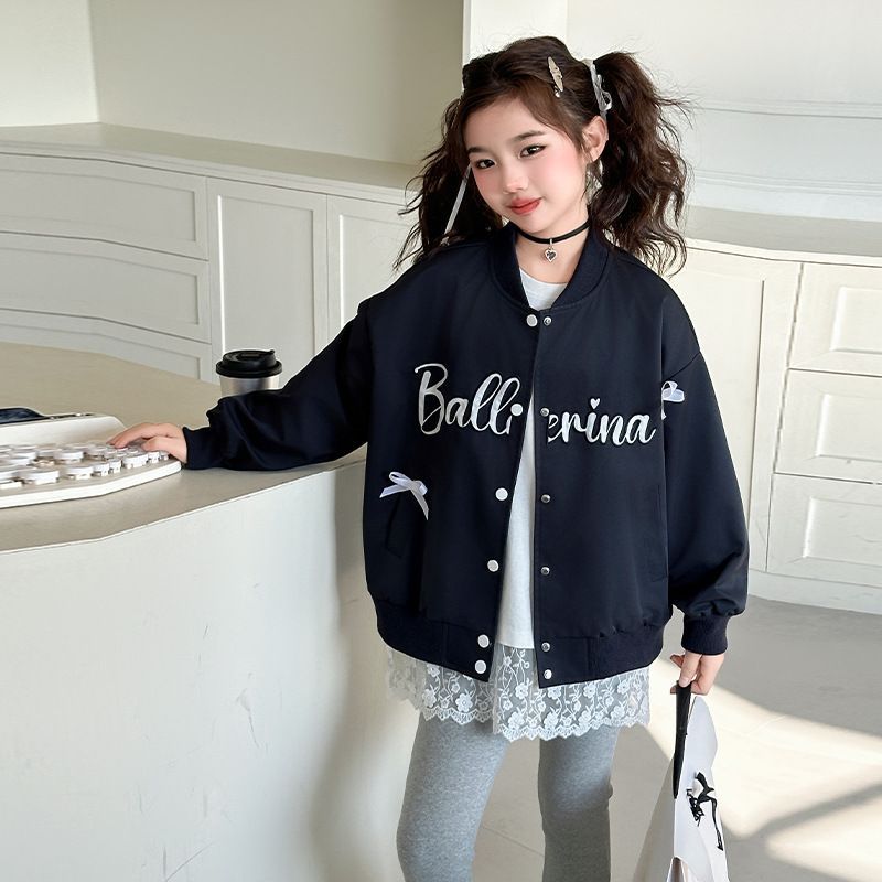 소녀 코트 봄과 가을 2025 새로운 스타일 중대형 어린이 활 야구 세트 어린이 패션 자수 재킷 트렌디