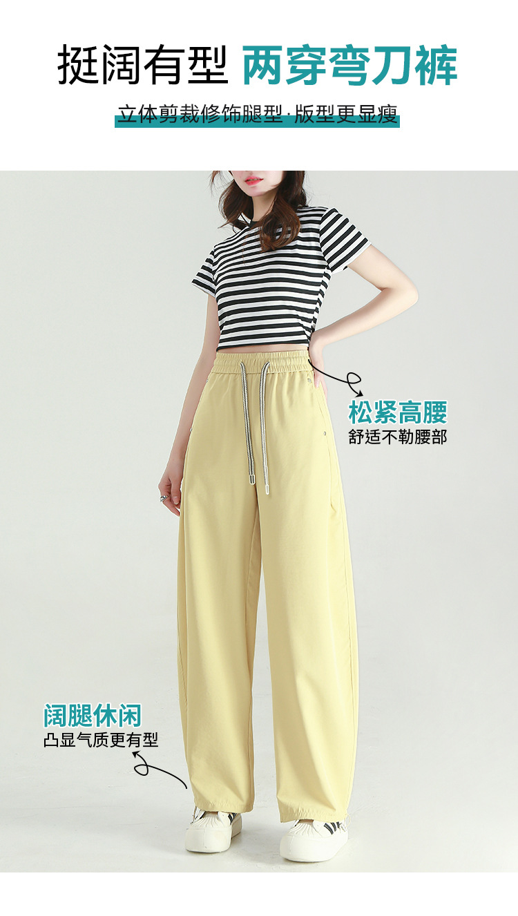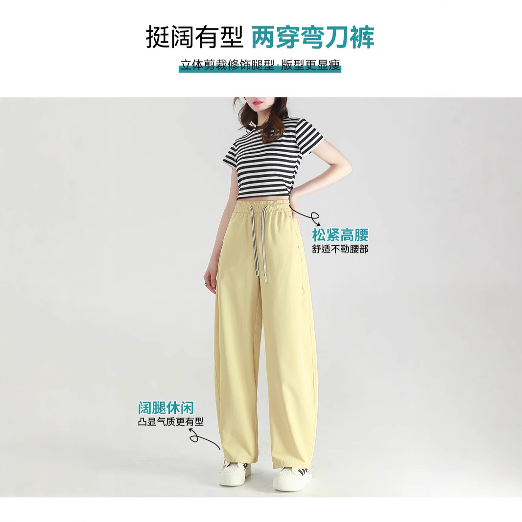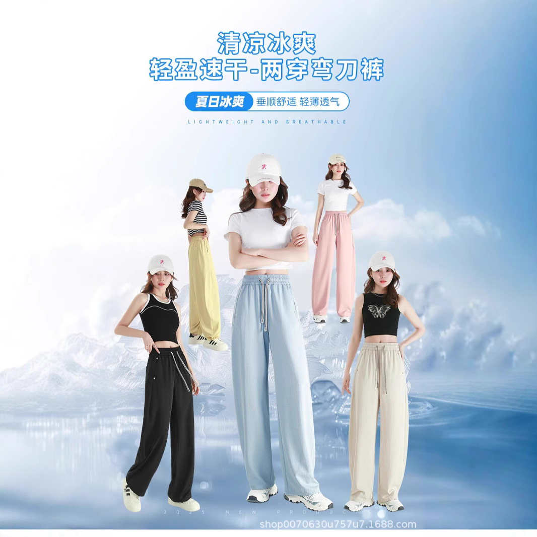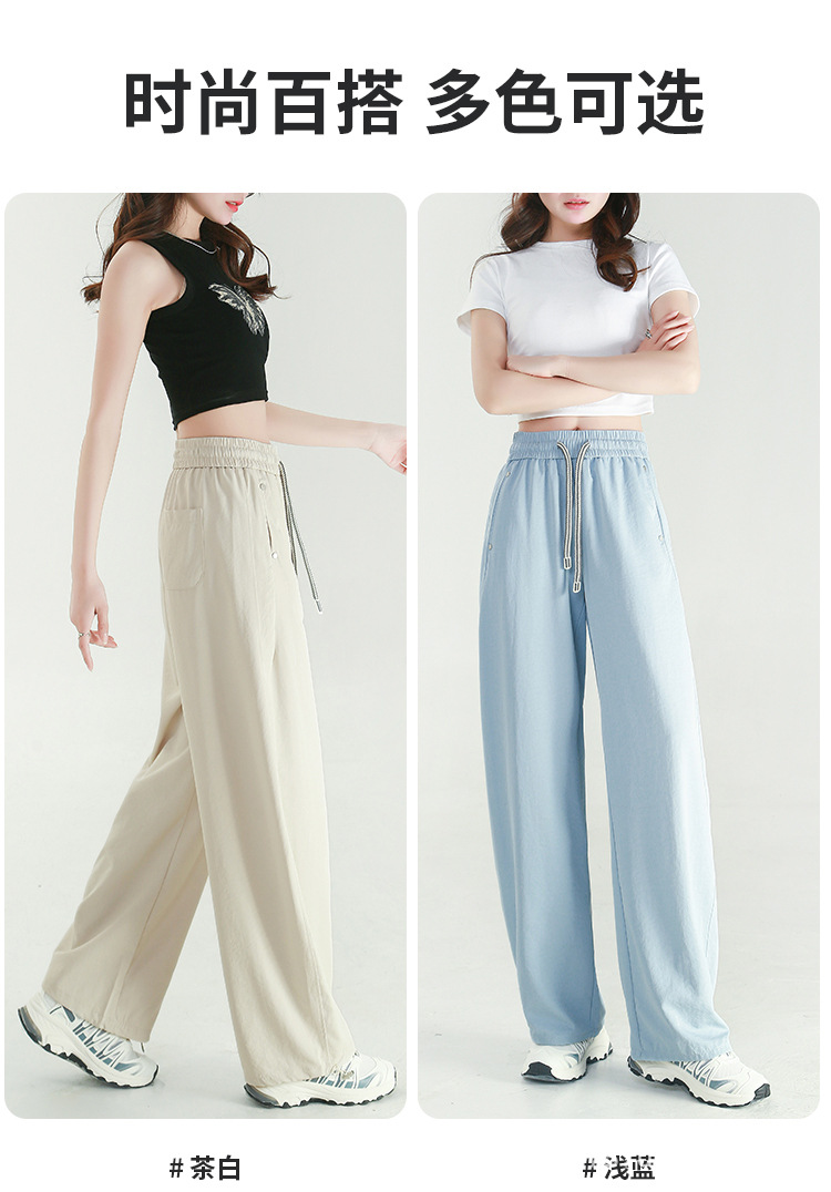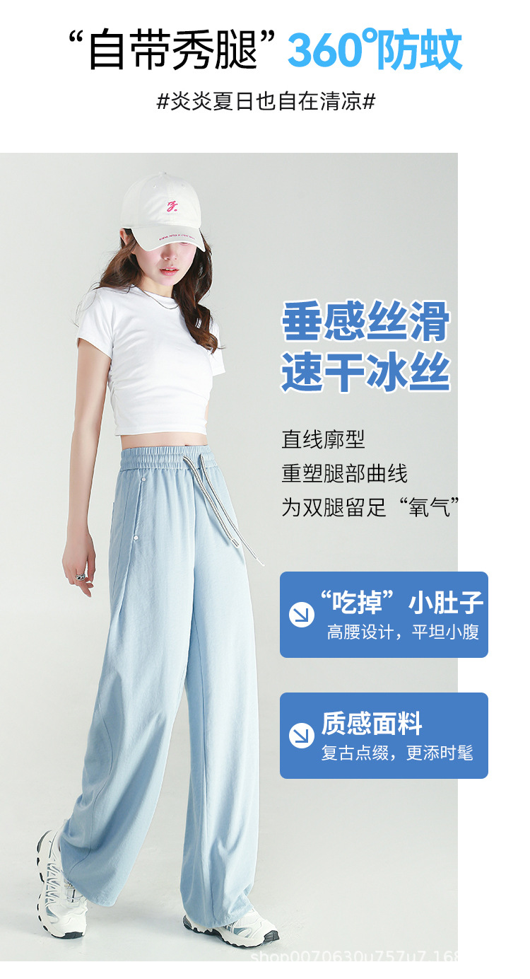 아이스 실크 야마모토 바지 여성용 여름 얇은 2025 새로운 선 스크린 높은 허리 작은 캐주얼 바지 넓은 다리 바지 바지스토어 가기