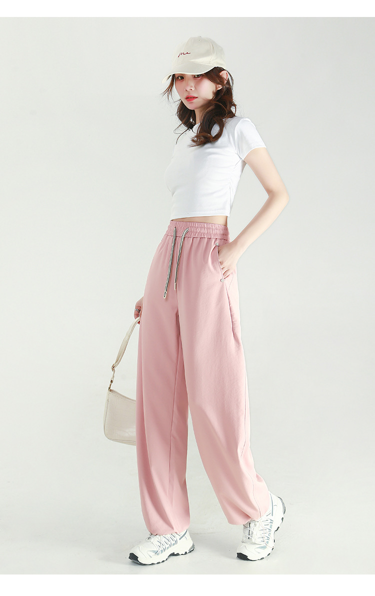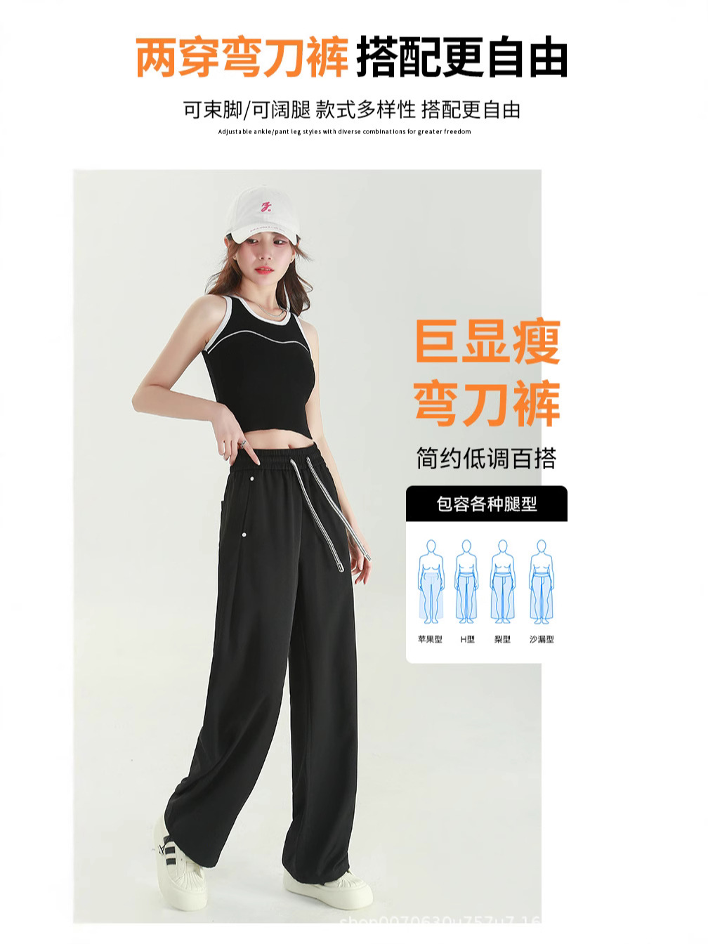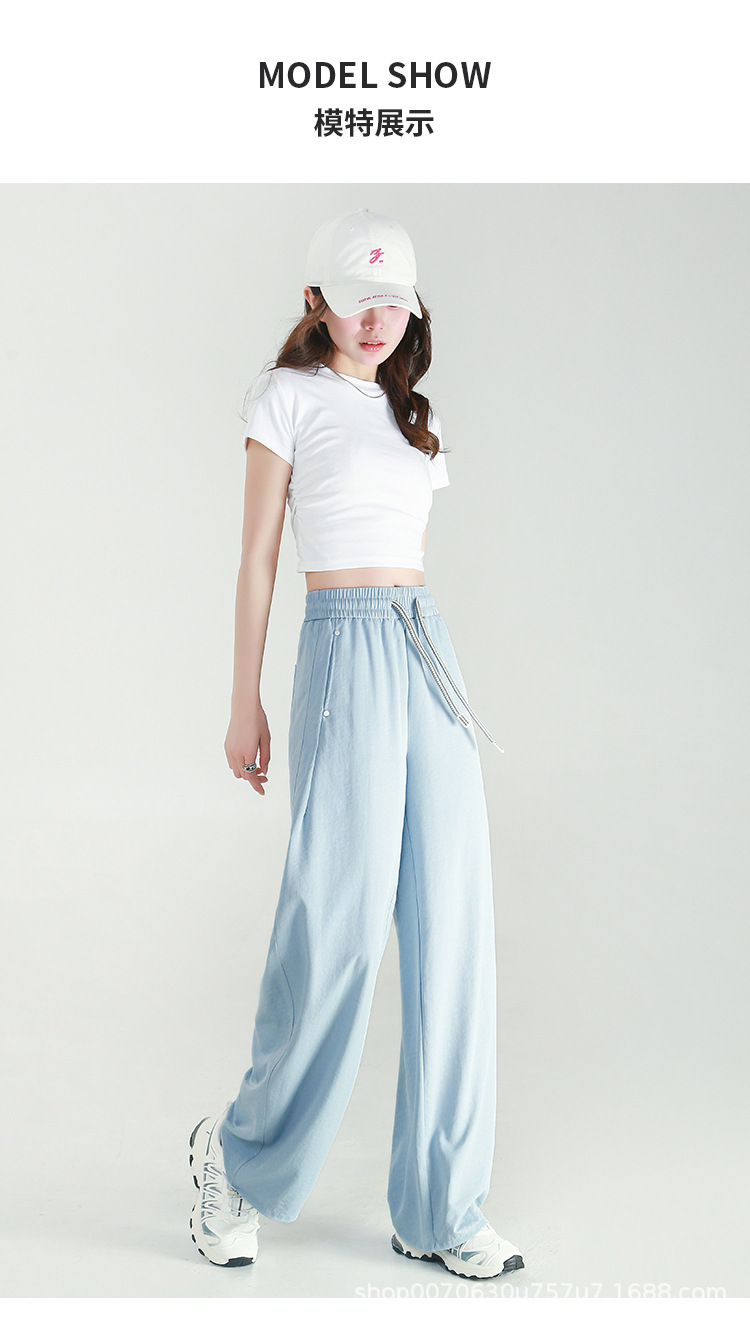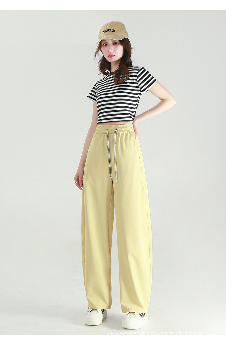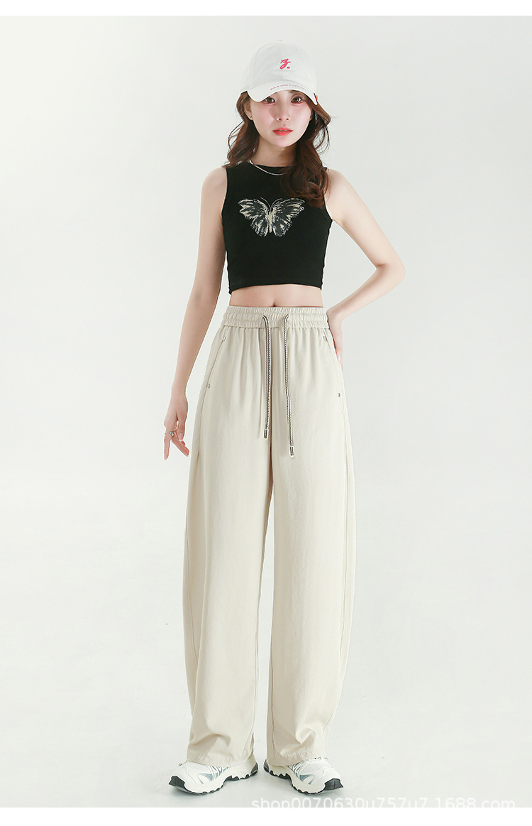 아이스 실크 야마모토 바지 여성용 여름 얇은 2025 새로운 선 스크린 높은 허리 작은 캐주얼 바지 넓은 다리 바지 바지스토어 가기