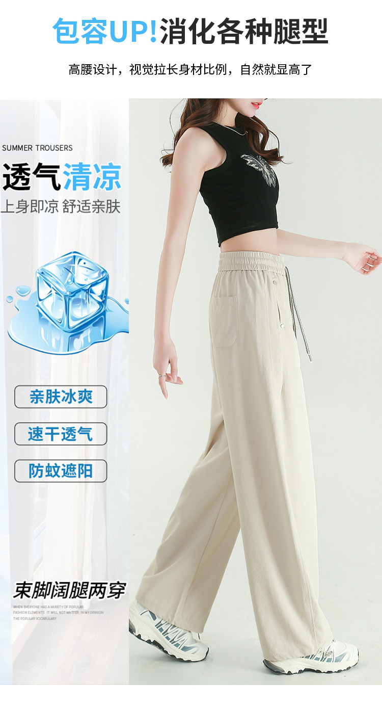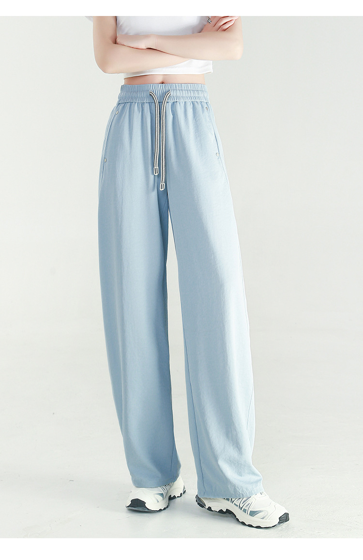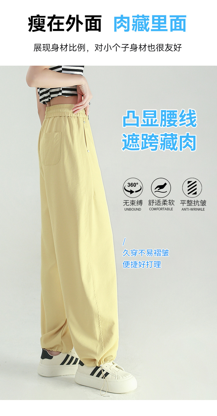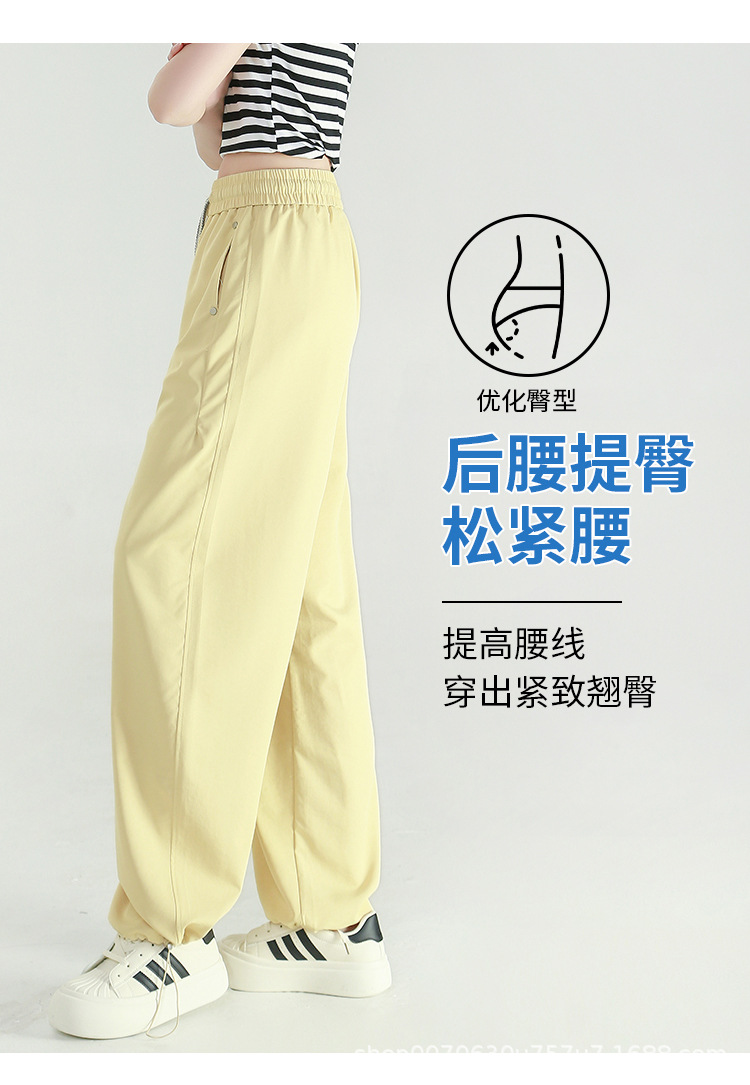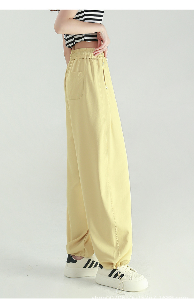 아이스 실크 야마모토 바지 여성용 여름 얇은 2025 새로운 선 스크린 높은 허리 작은 캐주얼 바지 넓은 다리 바지 바지
