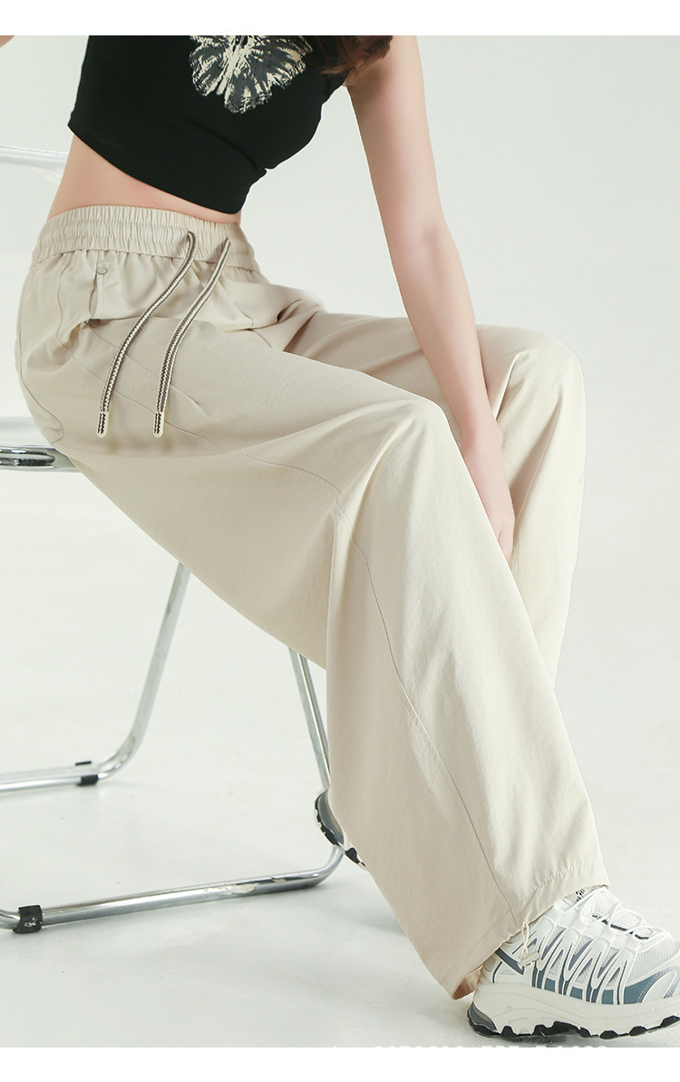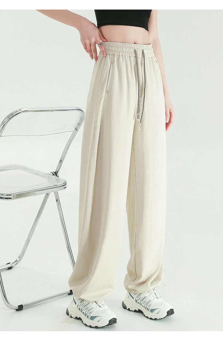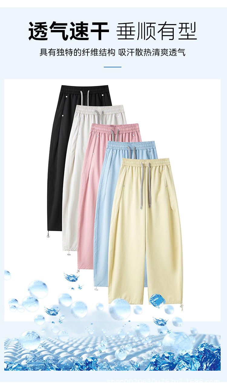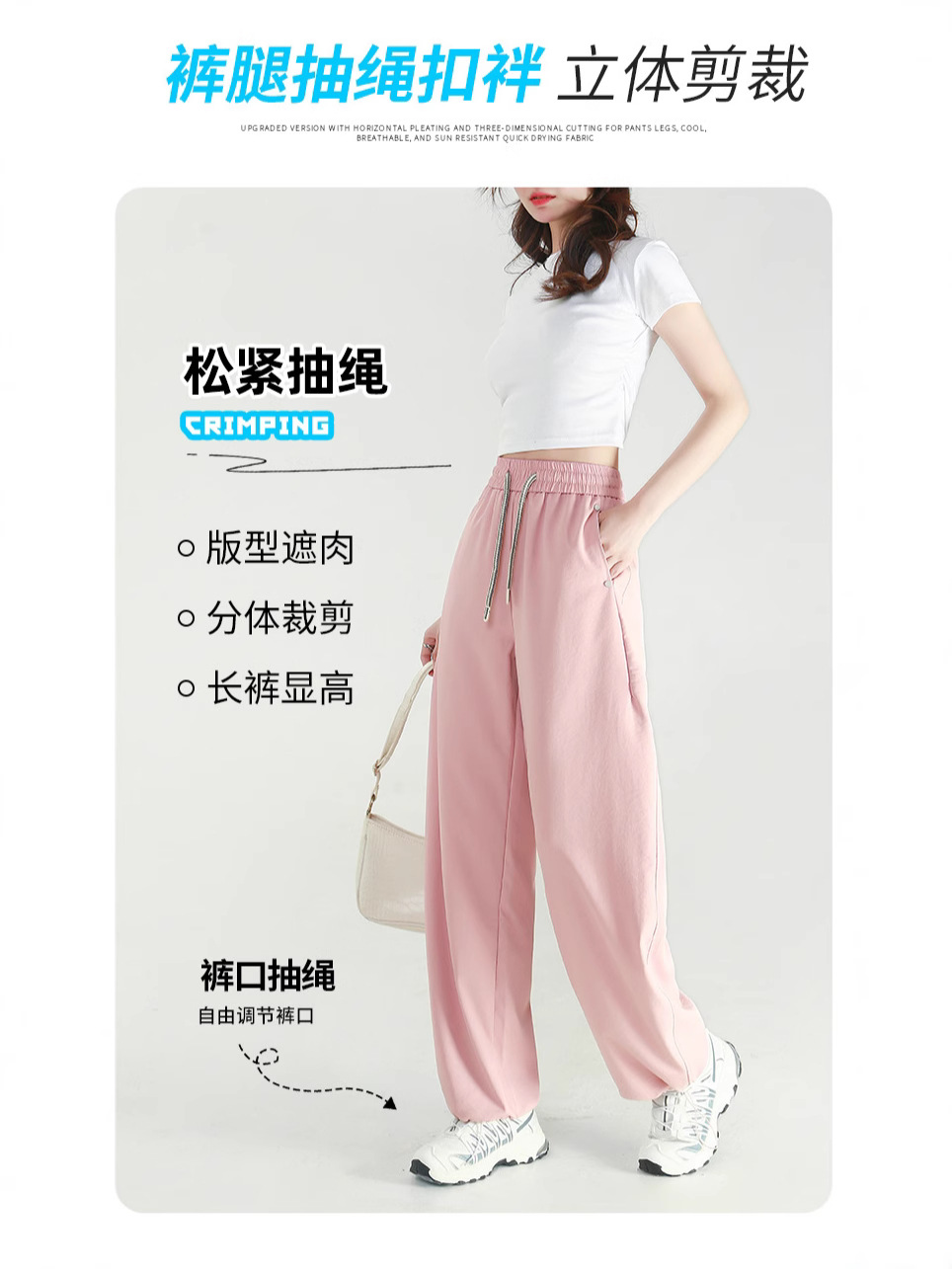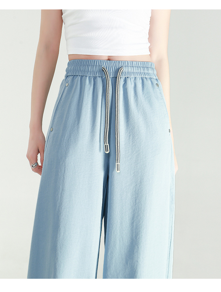 아이스 실크 야마모토 바지 여성용 여름 얇은 2025 새로운 선 스크린 높은 허리 작은 캐주얼 바지 넓은 다리 바지 바지
